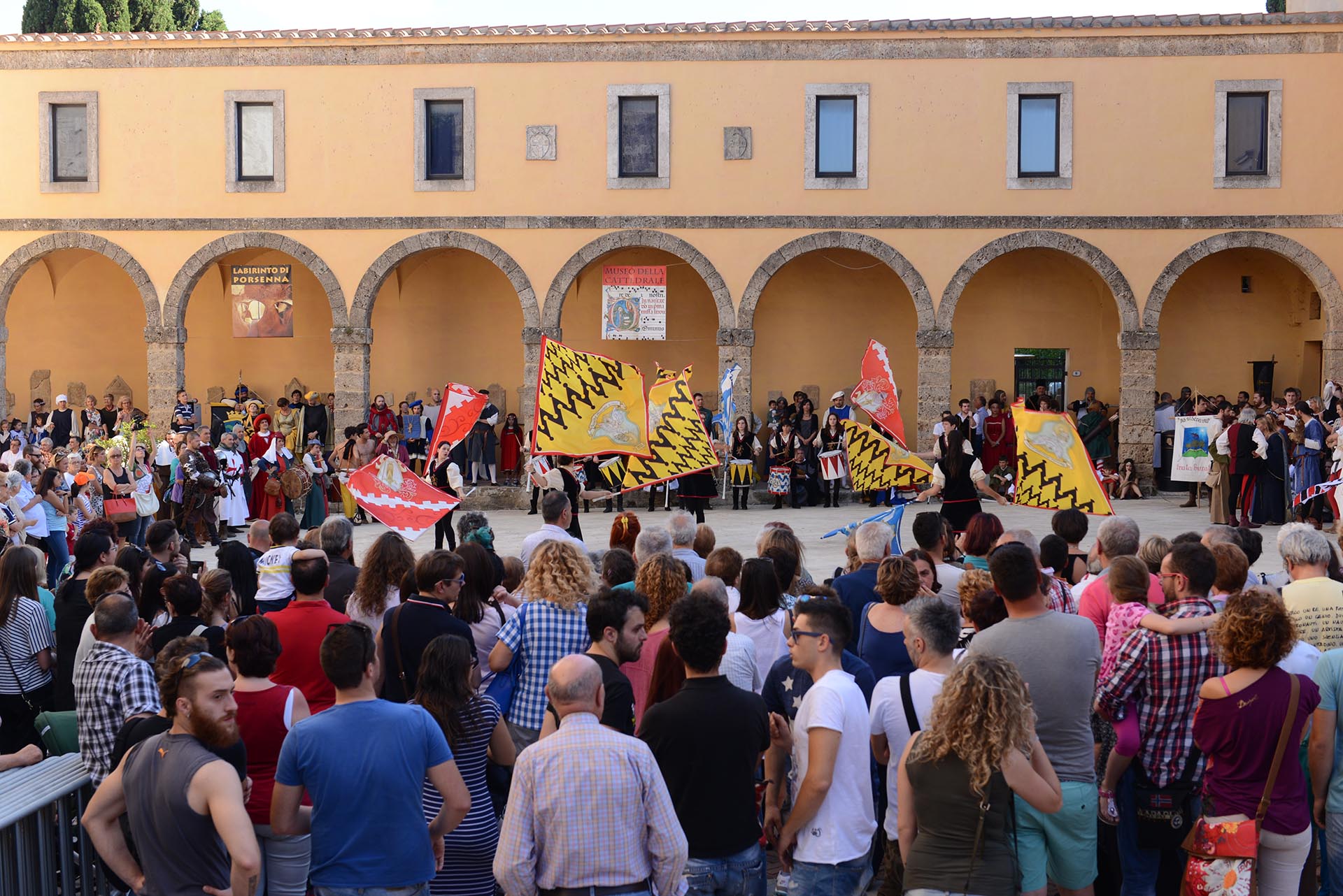 Il giorno più importante del Medioevo chiusino si è aperto con una ricca e lunga sfilata storica alla quale anche il sindaco Stefano Scaramelli, il vice sindaco Juri Bettollini e l’assessore al Sistema Chiusipromozione Chiara Lanari hanno partecipato sfilando rigorosamente con maestosi abiti dell’epoca. Al termine della sfilata gli sbandieratori, i musici, la compagnia d’arme Fera Sancti di San Marino e i falconieri di Trata Burata hanno allietato i tanti spettatori con i propri spettacoli mentre l’atmosfera del palio cresceva nella piazza minuto dopo minuto.
