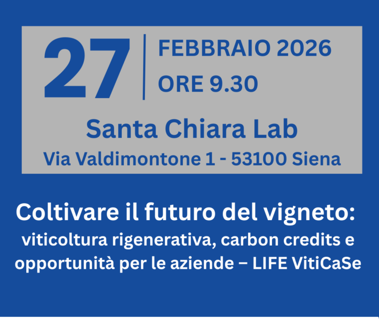 SIENA. Portare la sostenibilità dai concetti alla quotidianità operativa è la sfida al centro dell’incontro “Coltivare il futuro del vigneto: viticoltura rigenerativa, carbon credits e opportunità per le aziende – LIFE VitiCaSe”, che si terrà venerdì 27 febbraio 2026 alle ore 9.30, presso il Santa Chiara Lab di Siena (via Valdimontone 1). L’evento, promosso da Unione Provinciale Agricoltori di Siena, sarà trasmesso in live streaming sul canale Youtube di Confagricoltura Siena.
