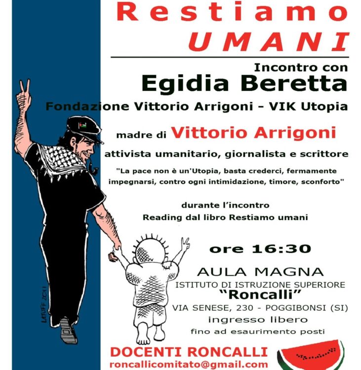 POGGIBONSI.  L’Istituto Roncalli è lieto di invitare la cittadinanza all’incontro con Egidia Beretta, madre di Vittorio “Vik” Arrigoni, attivista per i diritti umani, per un momento di testimonianza, memoria e impegno civile.