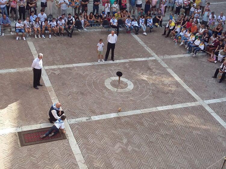 Ultimo atto del cartellone di eventi: il Gioco del Cacio al fuso, tra le contrade, in Piazza Pio II