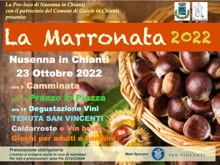 GAIOLE IN CHIANTI. Tutto pronto per la Marronata 2022 a Nusenna in Chianti, nel comune di Gaiole. Domenica 23 ottobre torna la tradizionale festa dedicata alla scoperta del territorio e di uno dei suoi prodotti principe: il marrone.