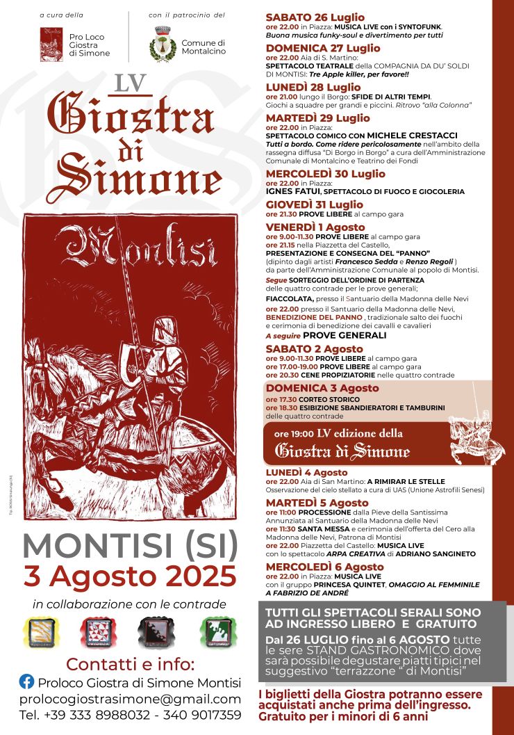 MONTALCINO. In attesa della 55° Giostra di Simone di domenica 3 agosto a Montisi è già iniziata la settimana di eventi.