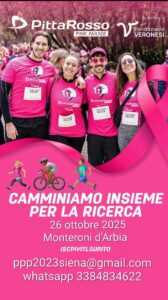 “Ogni anno lo sforzo che ci impegna è tanto, ma la soddisfazione è molta di più. Abbiamo iniziato per caso nel 2021 nella speranza di riunire qualche amica e passeggiammo in circa 350, lo scorso anno siamo arrivati a 3000, donne e uomini. Ora è vitale, è ninfa per noi che con tanta passione ci prodighiamo nell’organizzazione ed è un momento di aggregazione e stimolo per tutti i partecipanti. Nella convinzione che quanto viviamo sia la strada giusta, perché speriamo anche per quest’anno di poter dare un sostegno concreto alla ricerca d’eccellenza” – afferma Laura Ceccarelli, Referente provinciale per le attività di volontariato di Siena di Fondazione Veronesi
