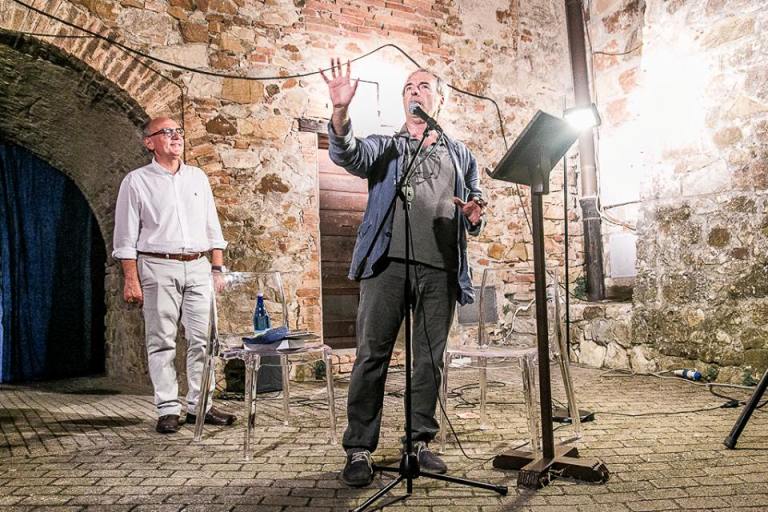 MURLO. Alla suggestione del castello di Murlo, illuminato di blu in occasione del festival Bluetrusco, si è aggiunta quella degli scritti di George Dennis, l’autore di una fondamentale guida, a fine Ottocento, sulle città e le necropoli dell’Etruria. A restituire la voce a questo inglese di nobile famiglia, ambasciatore, viaggiatore, lo scorso fine settimana, sono stati diversi studiosi e soprattutto David Riondino. Ed è stato un privilegio ascoltare la straordinaria prosa di Dennis: mai nessuno, finora, aveva tradotto integralmente la sua fondamentale opera. L’attore toscano si è cimentato nella lettura dell’affresco di un’Italia che non c’è più, almeno nei disagi, nella sporcizia, mentre l’indole degli italiani, fin da allora dediti a traffici sfruttando il patrimonio del territorio, purtroppo resta. La riscoperta di Dennis, una delle figure chiave tra gli intellettuali inglesi ammaliati dall’Italia ha coinciso, a Murlo, con presentazione della corposa opera in italiano (1200 pagine, due volumi, a cura della casa editrice senese Nuova Immagine).