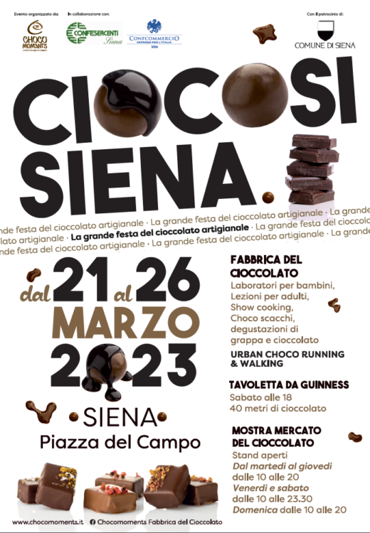 Si parte con la grande festa del cioccolato artigianale “CiocoSi”, nella splendida cornice di Piazza del Campo portando in scena le eccellenze dei maitre chocolatier e il meglio della produzione dolciaria ma anche laboratori per bambini e adulti, cooking show, e degustazioni.