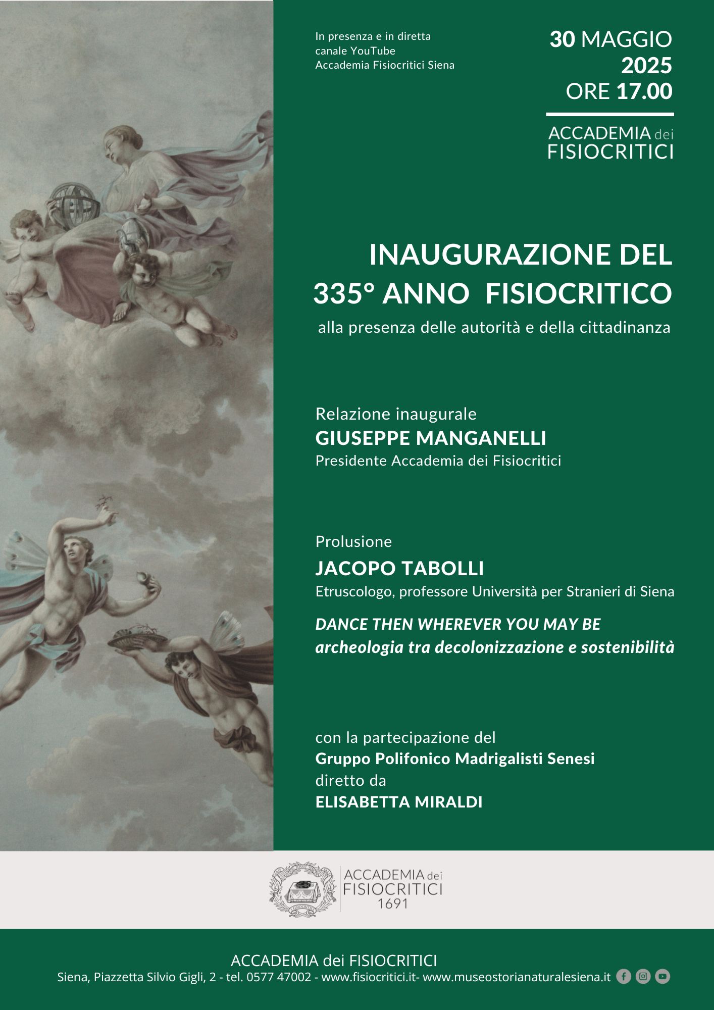 Jacopo Tabolli terrà la prolusione. Partecipazione dei Madrigalisti Senesi