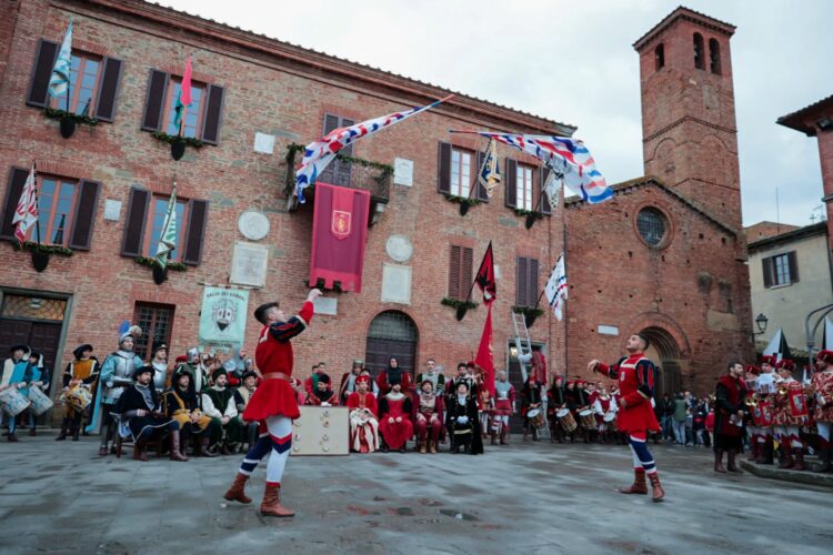 TORRITA DI SIENA. Dopo aver accolto nel proprio centro storico migliaia di visitatori in occasione delle Taverne, Torrita di Siena si prepara a vivere il secondo fine settimana paliesco, quello delle cene propiziatorie, della presentazione del drappo, della gara degli sbandieratori e dei tamburini delle Contrade e infine dell’attesa Corsa a dorso di somaro. Intanto la settimana del Palio si è vivacizzata con il quiz tra le Contrade “Chissà se in Contrada si sa”, il divertente gioco organizzato in collaborazione con il Collettivo goliardico torritese In Vino Veritas mercoledì 15 marzo al Teatro degli Oscuri. Tra domande di cultura paliesca e sfide a tema, la Contrada che ha concluso per prima questo singolarissimo gioco dell’oca è stata Cavone, con la squadra composta da Filippo Trabalzini, Beatrice Peruzzi, Aurora e Anthony Recupero.