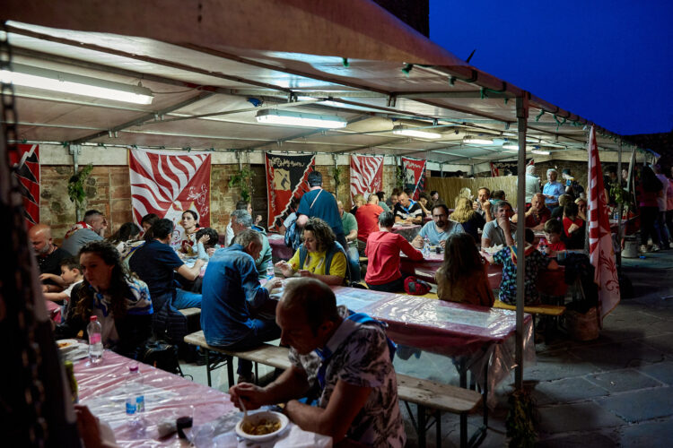 Dal centro storico ci si sposta nelle Contrade venerdì 17, quando alle ore 20.00 i contradaioli si riuniscono per le proprie cene propiziatorie, nel corso delle quali affidano ai fantini tutte le speranze di vittoria.