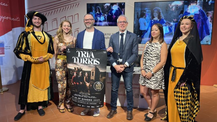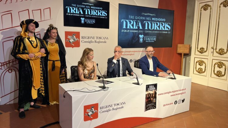 CHIUSI. Presentato presso il Palazzo della Regione Toscana il programma della XIV edizione del Tria Turris della Città di Chiusi. Dal 27 al 29 giugno 2025 il centro storico della città chiusina è pronto a essere catapultato nel medioevo grazie alla festa medievale organizzata dall’Associazione Terzieri della Città di Chiusi, che ormai da quattordici anni unisce storia, tradizione e spettacolo.