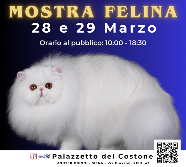 SIENA. Fascino, mistero e fusa per tutti i gusti: un’occasione da non perdere per i moltissimi amanti dei gatti che si daranno appuntamento nei giorni di sabato 28 e domenica 29 marzo, con orario 10-18,30 presso il Palazzetto del Costone di Monteriggioni-Siena. Saranno presenti esemplari da tutta Italia ed durante questa mostra internazionale felina che sarà esclusivamente una gara di bellezza dove sarà severamente vietato vendere cuccioli; l’esposizione è patrocinata dalla FiFe e dall’Anfi, Associazione Nazionale Felina Italiana. Più di 20 le razze che faranno bella mostra di sé nella gabbie protettive appositamente installate sul parquet protetto del PalaOrlandi: dai Blu di Russia, meglio conosciuti come i gatti degli Zar, ai giganti americani Maine Coon e ai Norvegesi delle Foreste nordiche, dai ragdolls agli American Curl con le orecchie a ricciolo, dai Kurilian Bobtail con le code a pon– pon, ai Persiani e ai Bengala con il mantello leopardato.