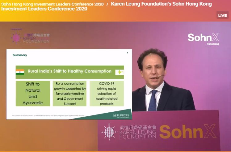 Durante il suo discorso Sean Debow ha sottolineato che "l'incremento nell'attenzione alla salute a causa del Covid-19 è stato di supporto a questi cambiamenti e crediamo che registrerà un'accelerazione significativa nei prossimi mesi con una crescente considerazione alla cura della casa, alla salute dei consumatori e al benessere personale. La pulizia e i prodotti per la salute preventiva hanno acquisito una priorità per proteggere le famiglie e le comunità del consumatore rurale dalla minaccia del virus Covid-19". "Considerando questi cambiamenti strutturali nel consumatore indiano rurale, credo che le aziende indiane del settore dei consumi, in particolare quelle con un'elevata esposizione ai prodotti naturali e ayurvedici, vedranno un'accelerazione nella crescita del loro business nei prossimi mesi e anni", ha concluso il CEO di Eurizon Capital.