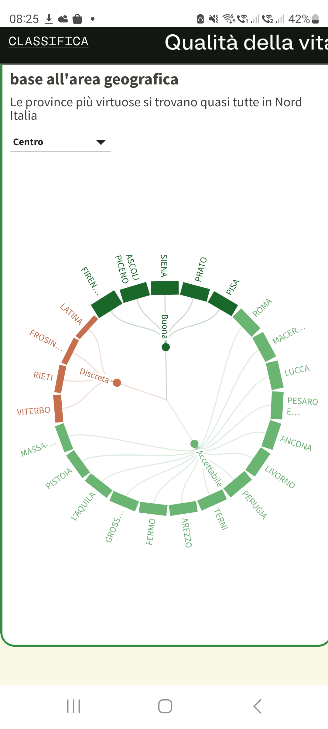 Le 107 province italiane sono state classificate in 5 cluster (Mediterraneo, Francigena, Adriatico, Padania, Metropoli), ottenendo così una fotografia più dettagliata delle specificità territoriali. La qualità della vita nel 2025 è risultata buona o accettabile in 60 province su 107. Si tratta di un valore inferiore a quello registrato negli ultimi anni e quindi indicativo di un peggioramento.