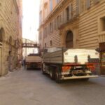 SIENA. L’anello di 339 metri di pietra serena è scomparso sotto uno strato di 15 centimetri composto da una miscela di tufo, argilla e sabbia, che gli operai del Comune di Siena – fin dalle tenebre – stanno con maestria disponendo, compattando e bagnando, per meglio fornire la base di appoggio dei cavalli dalle prove di notte, fino all’attimo fuggente della carriera e di un popolo in trionfo.