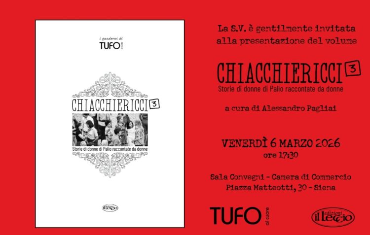SIENA. Dopo il successo dei primi due capitoli, esce “Chiacchiericci 3 – Storie di donne di Palio raccontate da donne” (Edizioni Il Leccio). Il nuovo volume prosegue il viaggio emotivo nel cuore pulsante di Siena, dando spazio a quelle narrazioni che per troppo tempo sono rimaste confinate tra le mura domestiche o in qualche angolo della città.