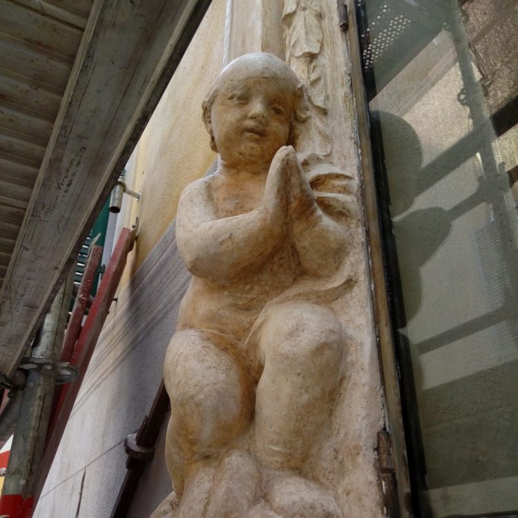 «La maggiore attenzione nel restauro del tabernacolo – spiega la restauratrice, Chiara Aulicino – si è concentrata sulla rimozione delle varie ridipinture applicate alla superficie originale degli stucchi nel corso dei secoli, cercando di mantenere una patina omogenea e rispettosa del tempo trascorso. Dopo la pulitura è stato necessario consolidare le superfici ed effettuare le varie ricostruzioni delle parti mancanti che sono state poi reintegrate a imitazione dell’originale; alla parte originale, invece, è stata applicato un protettivo ma non una patina, così da mantenere la cromia originale. L’affresco, staccato nel 1971 dal precedente restauro, non presentava grandi problemi: è stato quindi pulito dalle polveri depositate, con una revisione al ritocco pittorico che con il tempo si era indebolito».