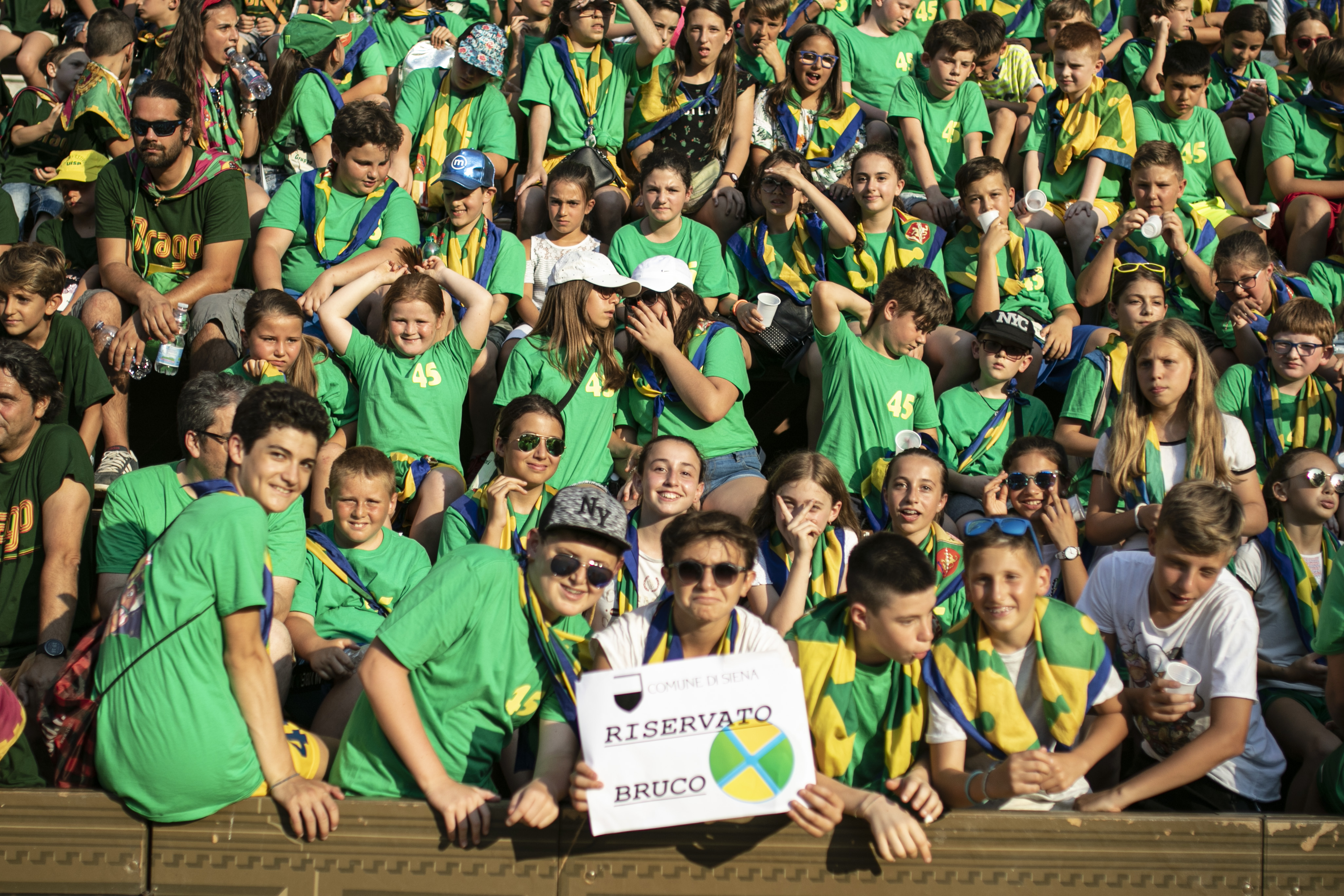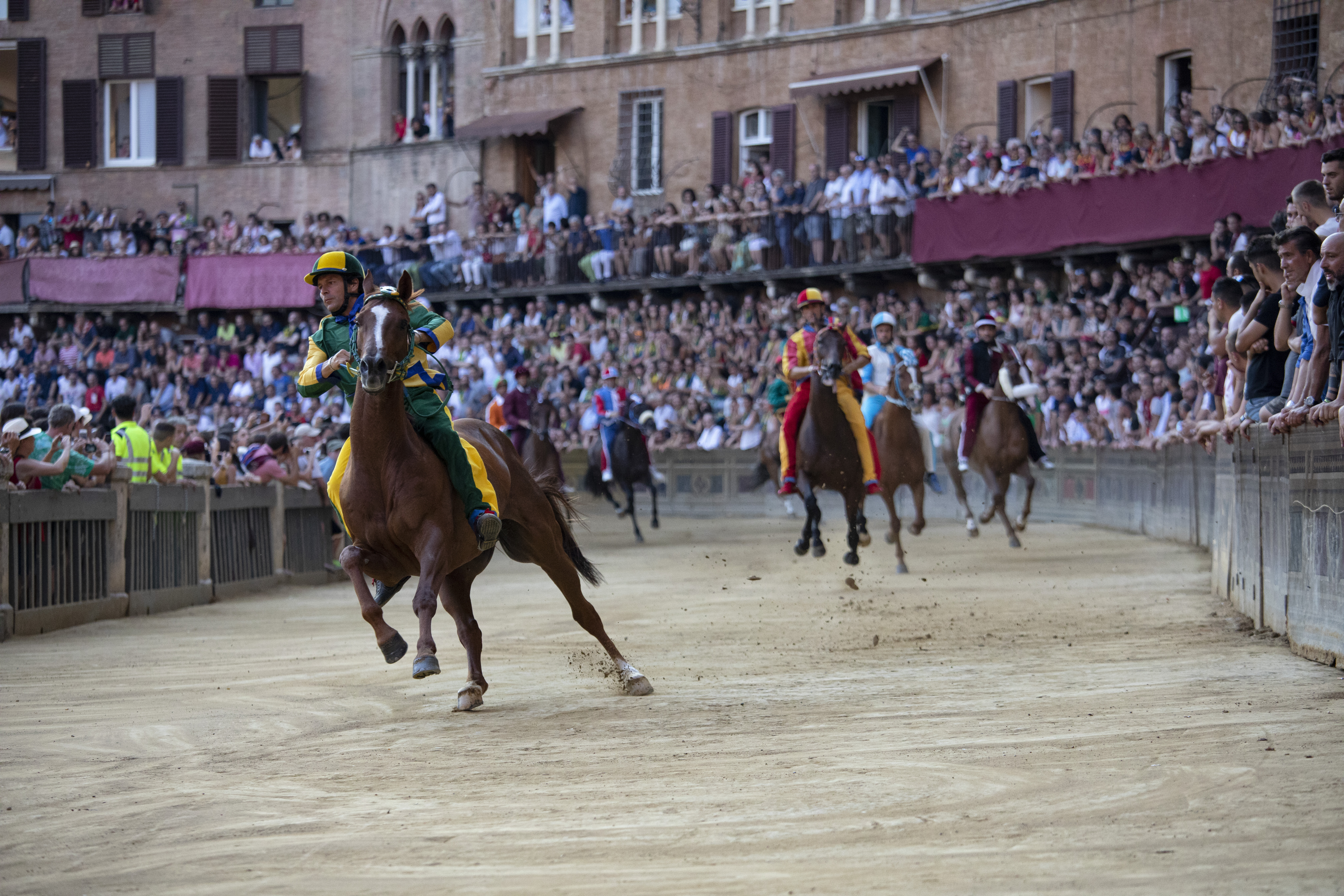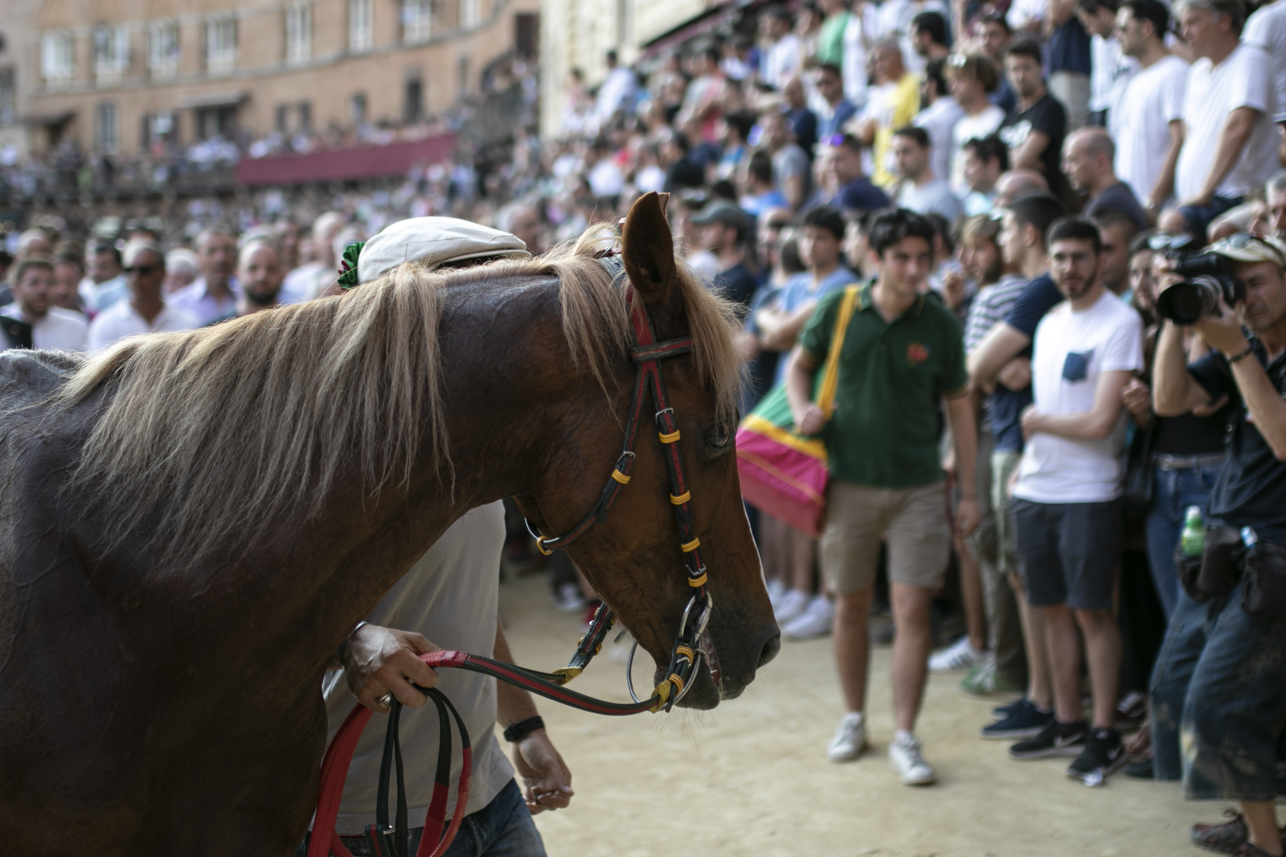 SIENA. Pronti alla prima prova del Palio di Provenzano con il seguente ordine di ingresso al canape: Onda (Amsicora-Tabacco); Selva (Tempesta-Remistirio); Bruco (Brio-Solu Tue Due); Torre (Turbine-Rocco Nice); Civetta (Carburo-Porto Alabe); Aquila (Brigante-Renalzos); Pantera (Trecciolino-Sorighittu); Giraffa (Tittia-Tale e Quale); Chiocciola (Scompiglio-Violenta da Clodia). Rincorsa: Drago (Ares-Remorex).