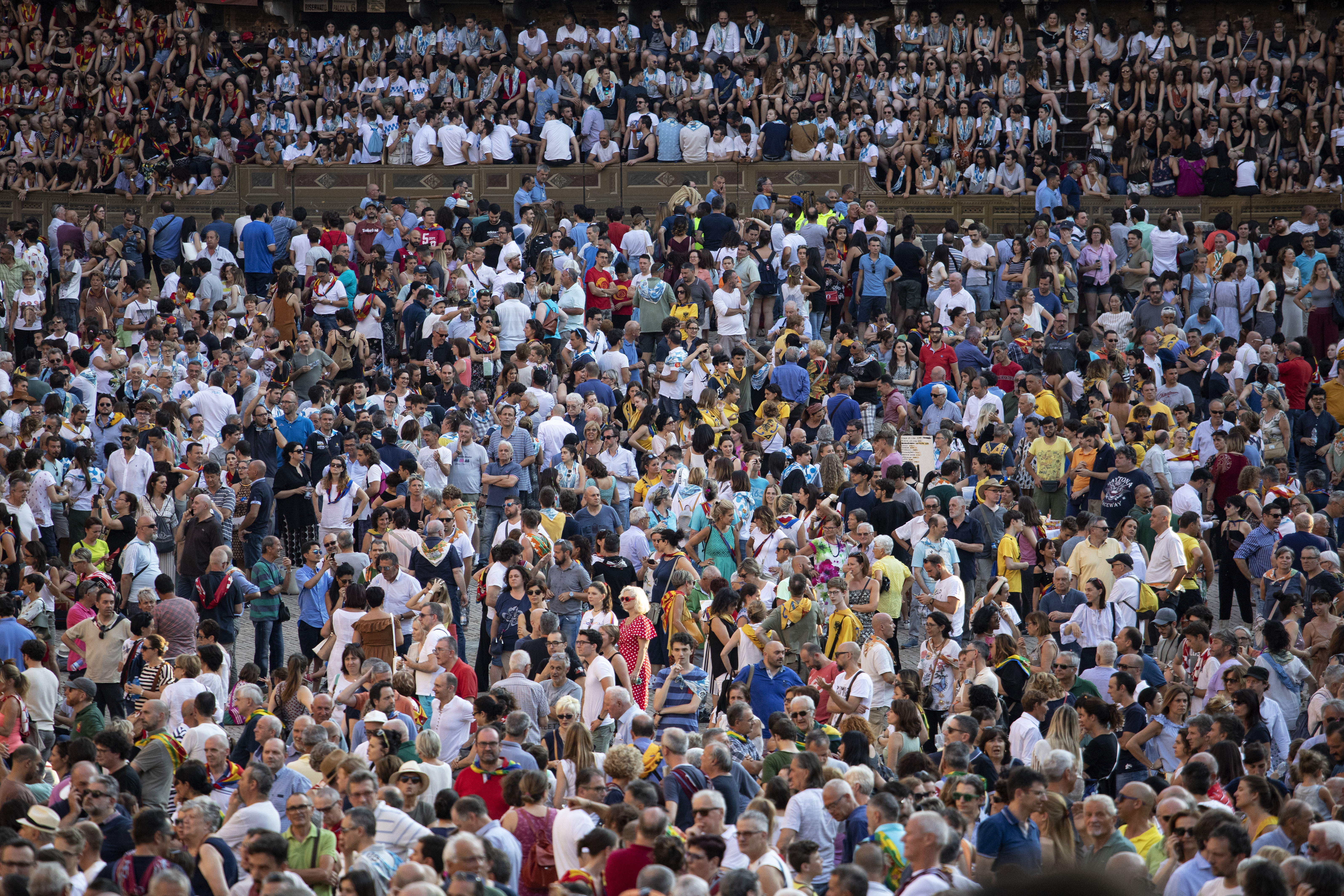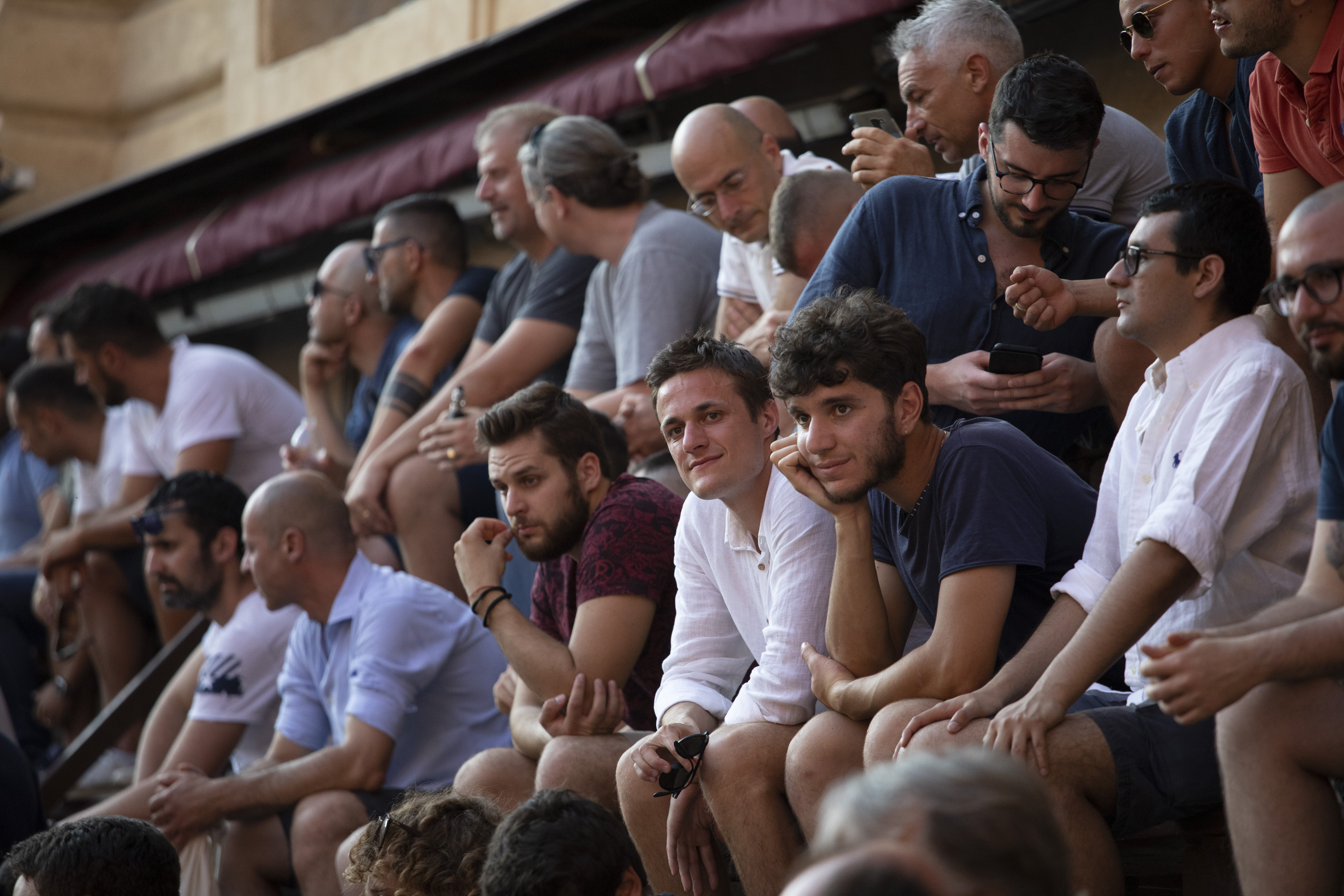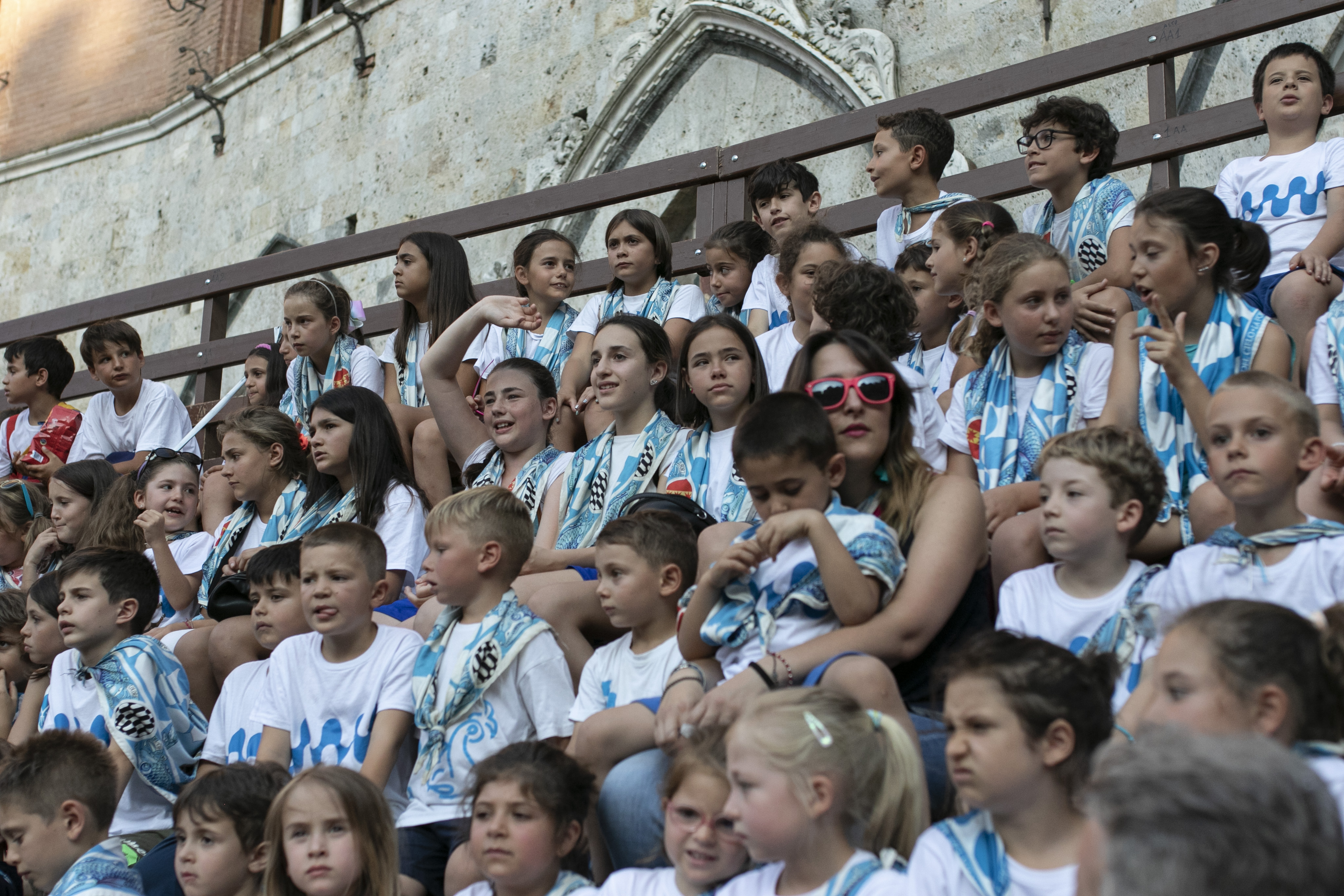 SIENA. Pronti alla prima prova del Palio di Provenzano con il seguente ordine di ingresso al canape: Onda (Amsicora-Tabacco); Selva (Tempesta-Remistirio); Bruco (Brio-Solu Tue Due); Torre (Turbine-Rocco Nice); Civetta (Carburo-Porto Alabe); Aquila (Brigante-Renalzos); Pantera (Trecciolino-Sorighittu); Giraffa (Tittia-Tale e Quale); Chiocciola (Scompiglio-Violenta da Clodia). Rincorsa: Drago (Ares-Remorex).