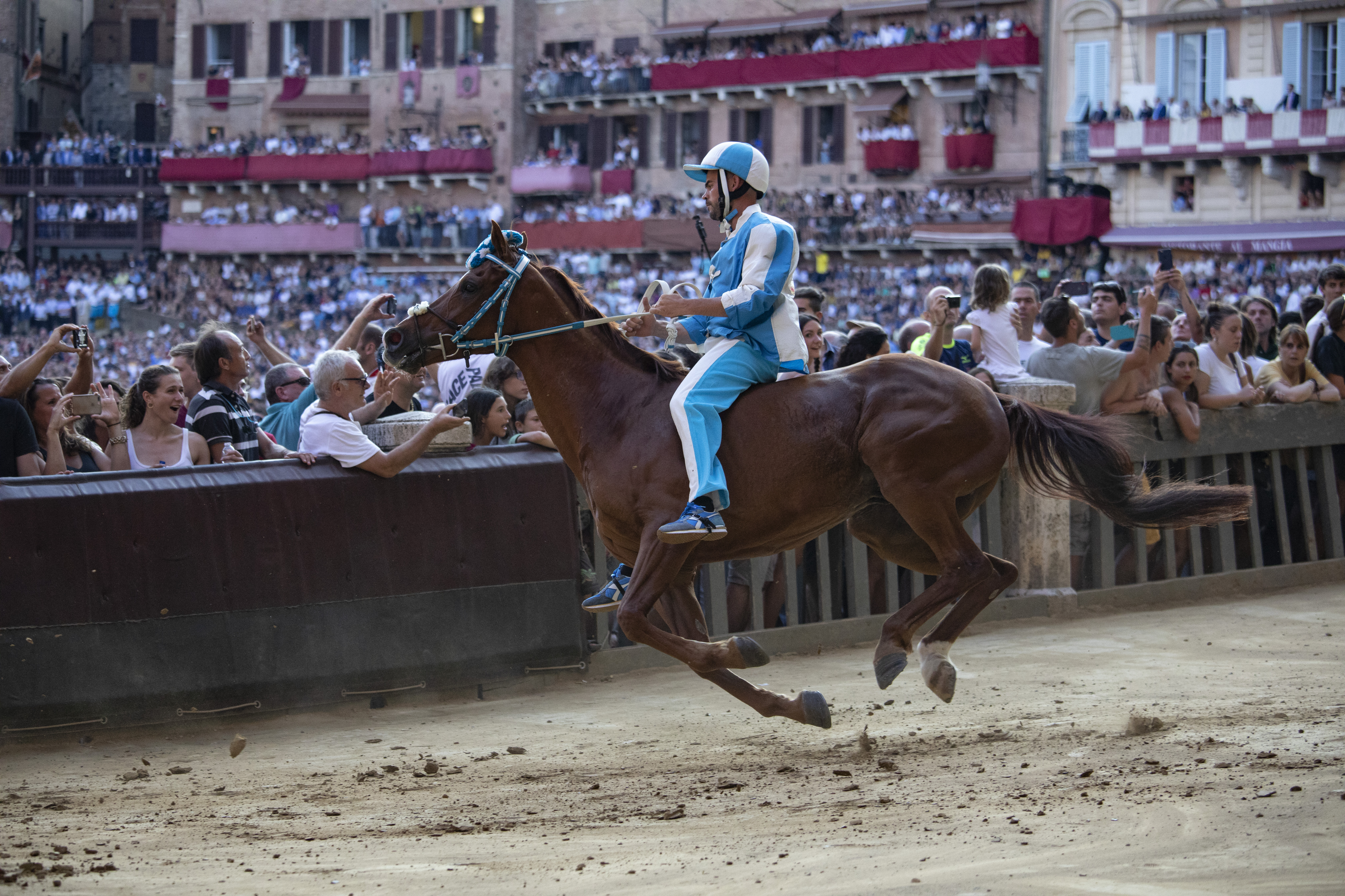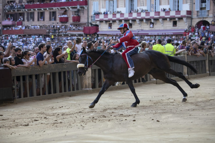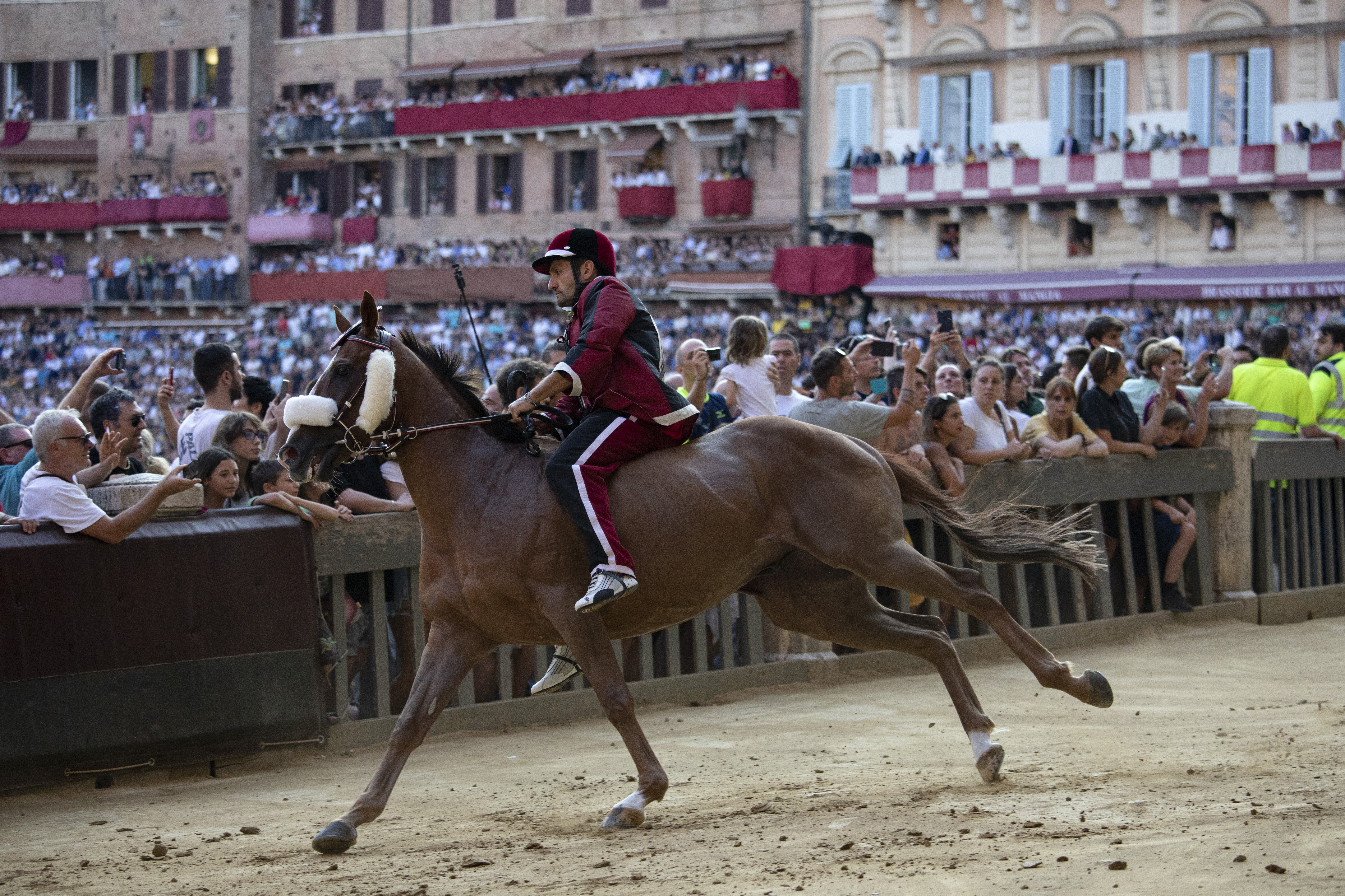 La Contrada della Pantera con Sorighittu montato da Trecciolino ha vinto la prima prova del Palio del 2 Luglio
