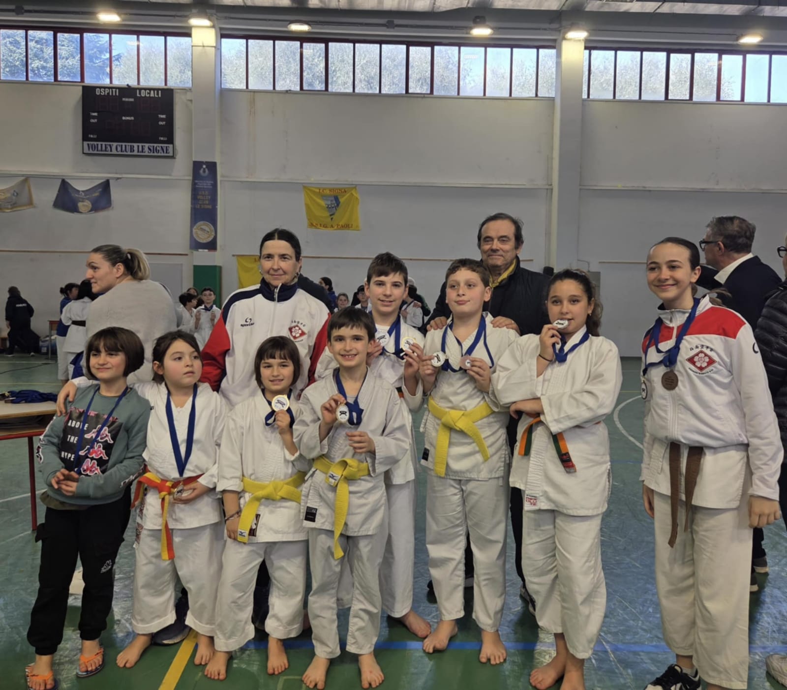 SIENA. Grande soddisfazione per i risultati dei giovanissimi atleti dell’Asd Shinan Karate Kai alla manifestazione agonistica “Cintura nera per un giorno” svoltasi a Signa (FI) domenica 22 febbraio, alla quale hanno partecipato 9 atleti che, gareggiando anche in più specialità, hanno conquistando un totale di 11 medaglie: 6 ori, 3 argenti e 2 bronzi .