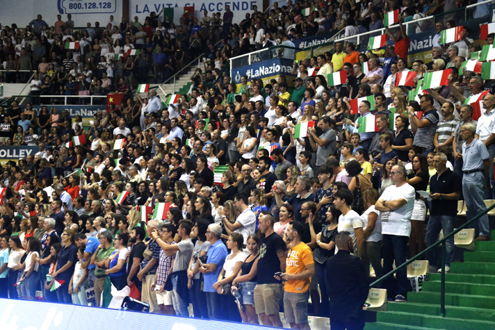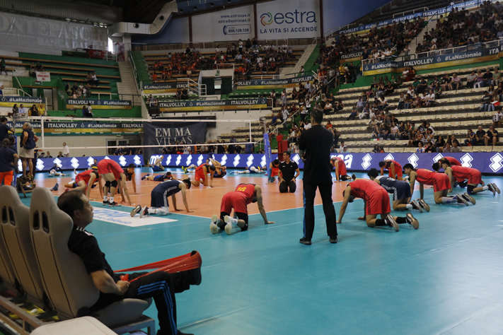 Al PalaEstra è uno spettacolo straordinario. La Nazionale italiana di volley maschile gioca l’ultimo test match prima dei Campionati del mondo davanti a 3.600 spettatori. Il tifo è caldissimo.