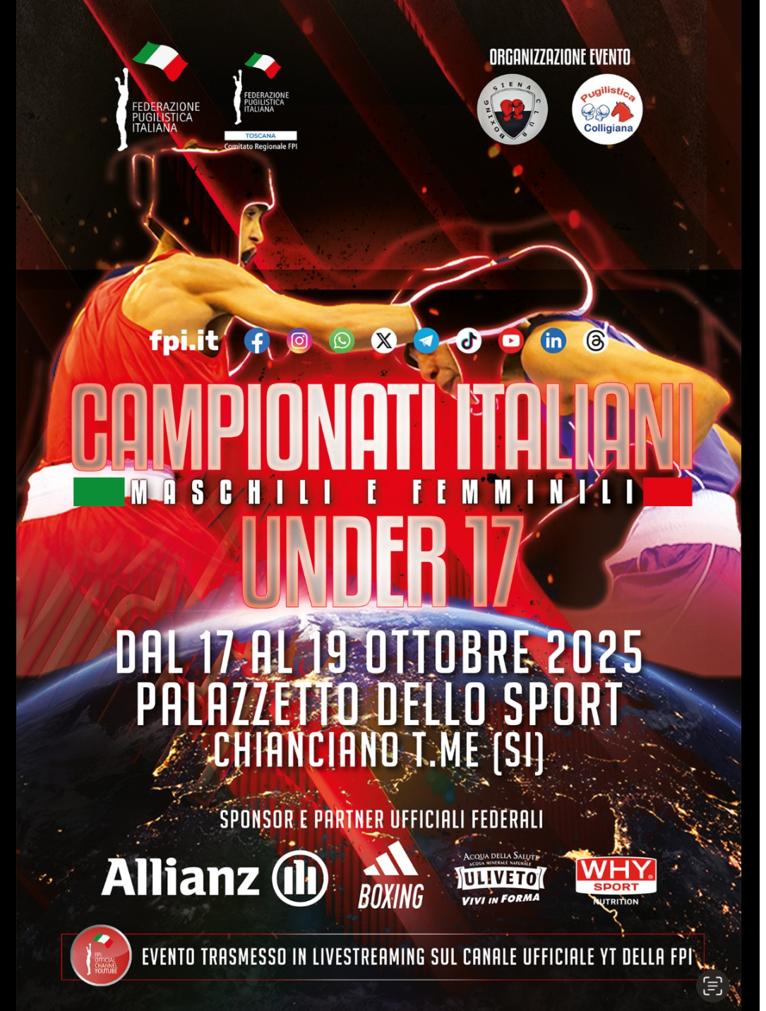 Saliranno sul ring pugili di assoluto livello, tutti i migliori atleti Under 17 presenti in Italia, decisi ad aggiudicarsi la canotta tricolore. La vittoria del Campionato Italiano garantisce grande visibilità e permette spesso di accedere alle squadre nazionali.