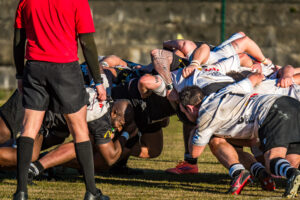 L’avvio è stato di studio, ma a rompere l’equilibrio sono stati gli ospiti, che al 12’ trovano la meta all’ala portandosi sullo 0–7. I senesi reagiscono con ordine e, approfittando di due cartellini gialli consecutivi a carico di Prato Sesto, aumentano la pressione offensiva. Al 22’ è Ricci a trascinare il XV senese: carretto di mischia e meta che vale il 7–7. La spinta dei bianconeri continua e al 30’ ancora Ricci, questa volta partendo in percussione, firma il sorpasso per il 14–7. Nel finale di tempo, però, con Siena in inferiorità numerica per il giallo a Parigi, gli ospiti trovano la meta su azioni ripetute, chiudendo il primo tempo sul 14–14.