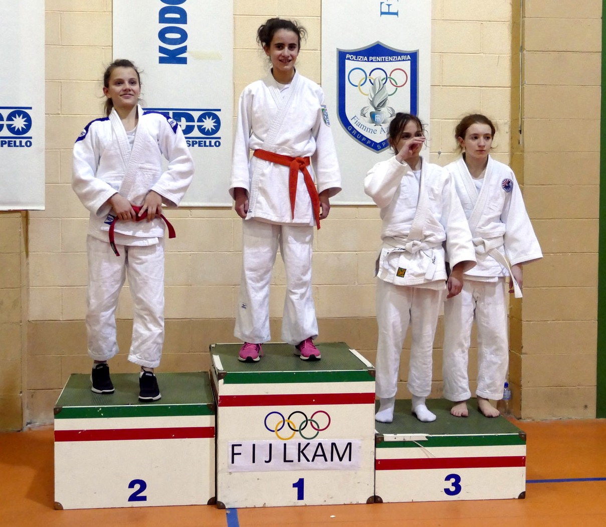 Ottimo risultato delle sorelle Palumbo, ambedue oro, Laura negli UNDER 13 e Giulia negli UNDER 18; l’argento è andato a Giulia Nocciolini e a Giulio Muzzi negli UNDER 15 i quali avrebbero potuto portare a casa anche un poker. Si sono fermati al settimo posto, in una gara di grande fatica, le ragioni le abbiamo esposte prima, combattendo tra le ultime categorie in lizza dopo ore di attesa e quindi di tensione e stanchezza: Claudia Cepparulo, Tobia Grazzini e Matteo Galasso, tutti UNDER 15, fermati ai piedi del podio. Il loro potenziale tecnico è indiscusso, ma la loro condizione mentale si è andata ad affievolire col passare delle ore.
