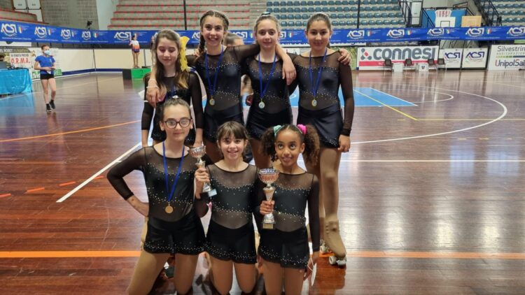 Importante medaglia d’argento per Caldi Stella nella categoria Principianti B Professional , Bonucci Ginevra nella categoria Principianti A Excellent, cosi come Pasquinuzzi Gemma nella categoria Pulcini Classic B. Menzione speciale per le atlete del Gruppo Meteore (Alice Vessichelli, Caterina Favilli, Noemi Cena e Irene Salvi) che interpretando con maestria il pezzo sul tema “ Le cose che ho imparato nella vita”, ha ottenuto un prestigioso secondo posto, portando a casa anche il titolo di Vice Campionesse Nazionali.