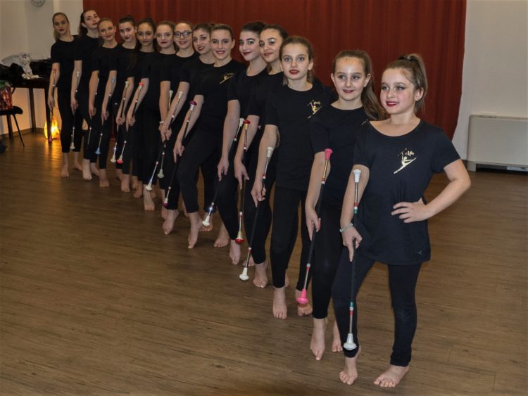 “La nostra disciplina – spiegano Roberta Covati, direttrice di sezione ed Emanuela Furi, direttrice tecnica – è un connubio di eleganza, energia e perfezione, così come viene definita a tutti i livelli questo sport. Applichiamo principi della ginnastica artistica e della ginnastica ritmica. L’attrezzo principalmente usato è il bastone, un’asta metallica a sezione circolare di lunghezza variabile, alle cui estremità vi sono due pomelli in gomma. Vengono inoltre usati pom – pon, bandiere, nastri e tamburelli. Ci cimentiamo in esibizioni accompagnate da musica, in cui alleniamo ritmo, eleganza e in cui riveste particolare importanza il concetto di gruppo”.