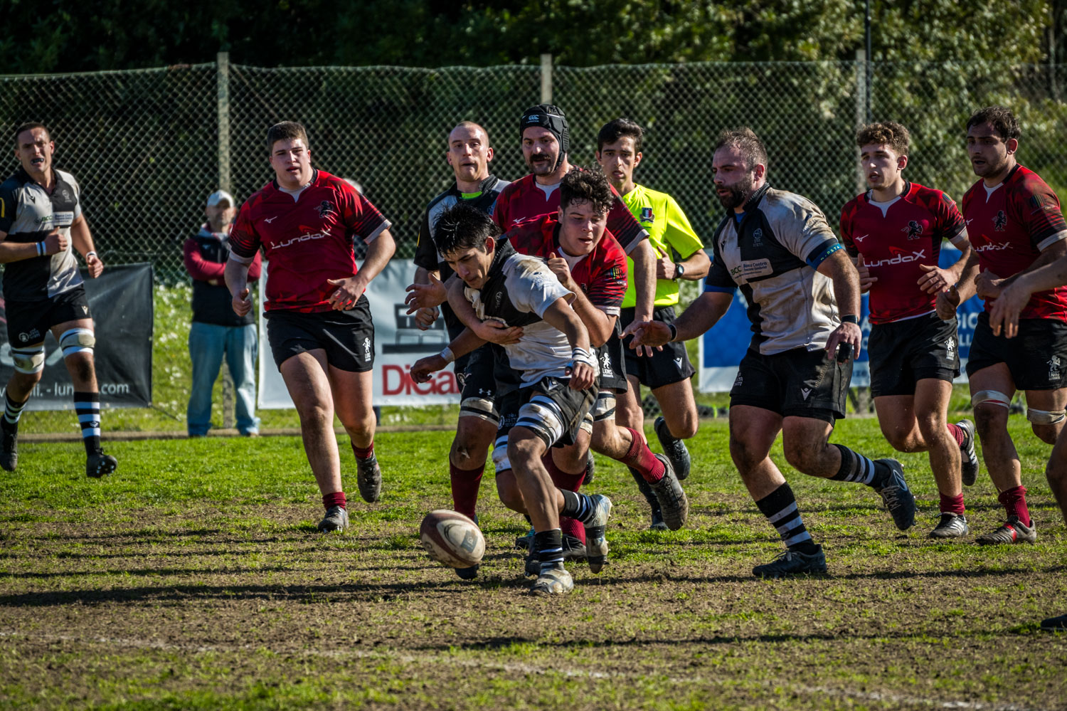 Al 78’ finalmente arriva la meta di punizione sulla quarta meta non schiacciata per il direttore di gara per fallo ripetuto, ma senza il terzo cartellino che il regolamento avrebbe previsto. Gli ultimi minuti sono un assalto continuo del XV senese, ma i padroni di casa resistono e, sfruttando un errore bianconero, chiudono la gara calciando fuori senza rischiare nulla vista la doppia inferiorità numerica.