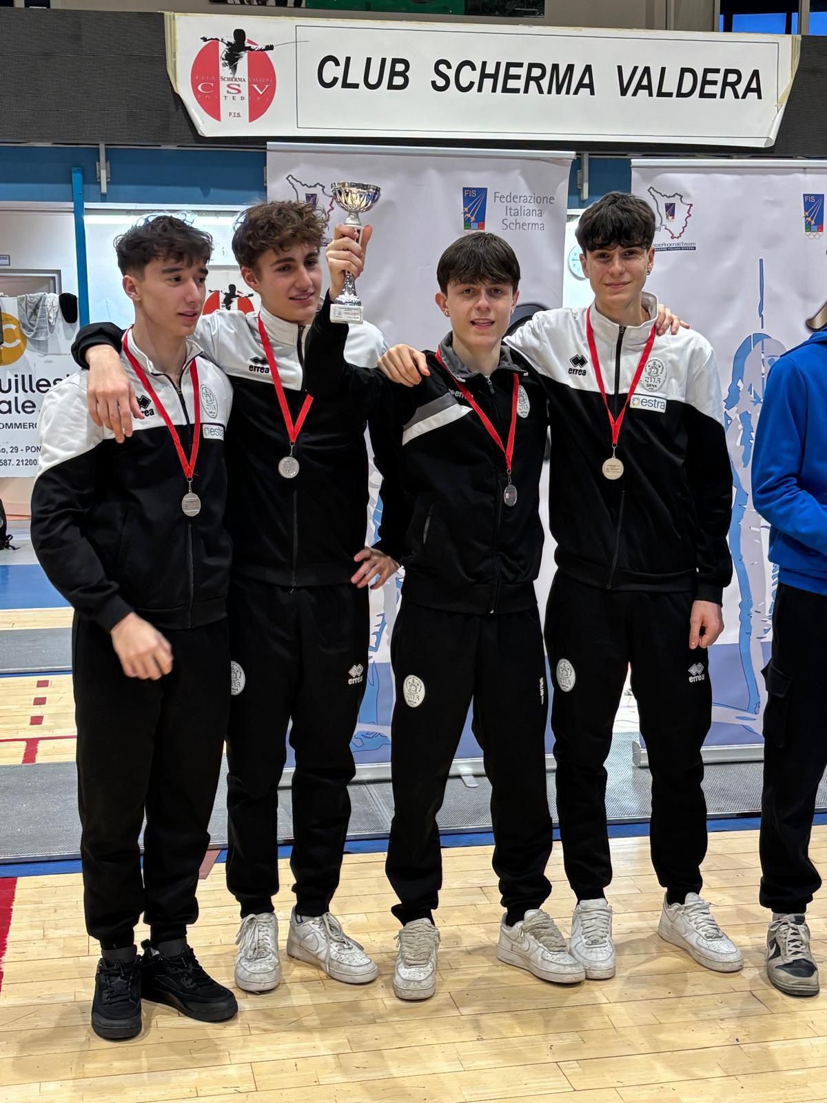 Nella giornata di domenica, quella dedicata alle gare a squadre, i quartetto del fioretto maschile, formato da Andrea Cannucci, Pietro Corsini, Matteo Danero e Lorenzo Marrelli si aggiudica la medaglia di bronzo, cedendo solo in finale ai fiorentini dell’accademia di poche stoccate.