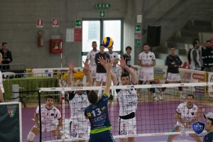 L’inizio del terzo set è il più equilibrato della partita, ma il primo turno in battuta di Spescha, grazie ad un ace spinto all’incrocio delle righe porta subito un doppio vantaggio al Chiusi (7-5). Nella parte centrale del set il gioco di tutta la squadra, e in particolare di Spescha in attacco, Lipparini in difesa e Scappaticcio alla regia, permette di incrementare il vantaggio e di conquistare il secondo time-out tecnico (16-12). Anche nel finale è la sola padrona del campo di Aversa; sul 20-14, dopo un time-out chiesto da Carpi, mister Giannini trova spazio anche per il giovane Urbani che entra per un giro ad alzare il muro toscano. Il 24° punto è frutto di un grande ace di Simone Marini appena entrato al posto di Grassano. L’ultimo punto che consegna la vittoria a Chiusi è di Roberto Braga che, come a Chiusi, chiude con un gran muro (25-19)
