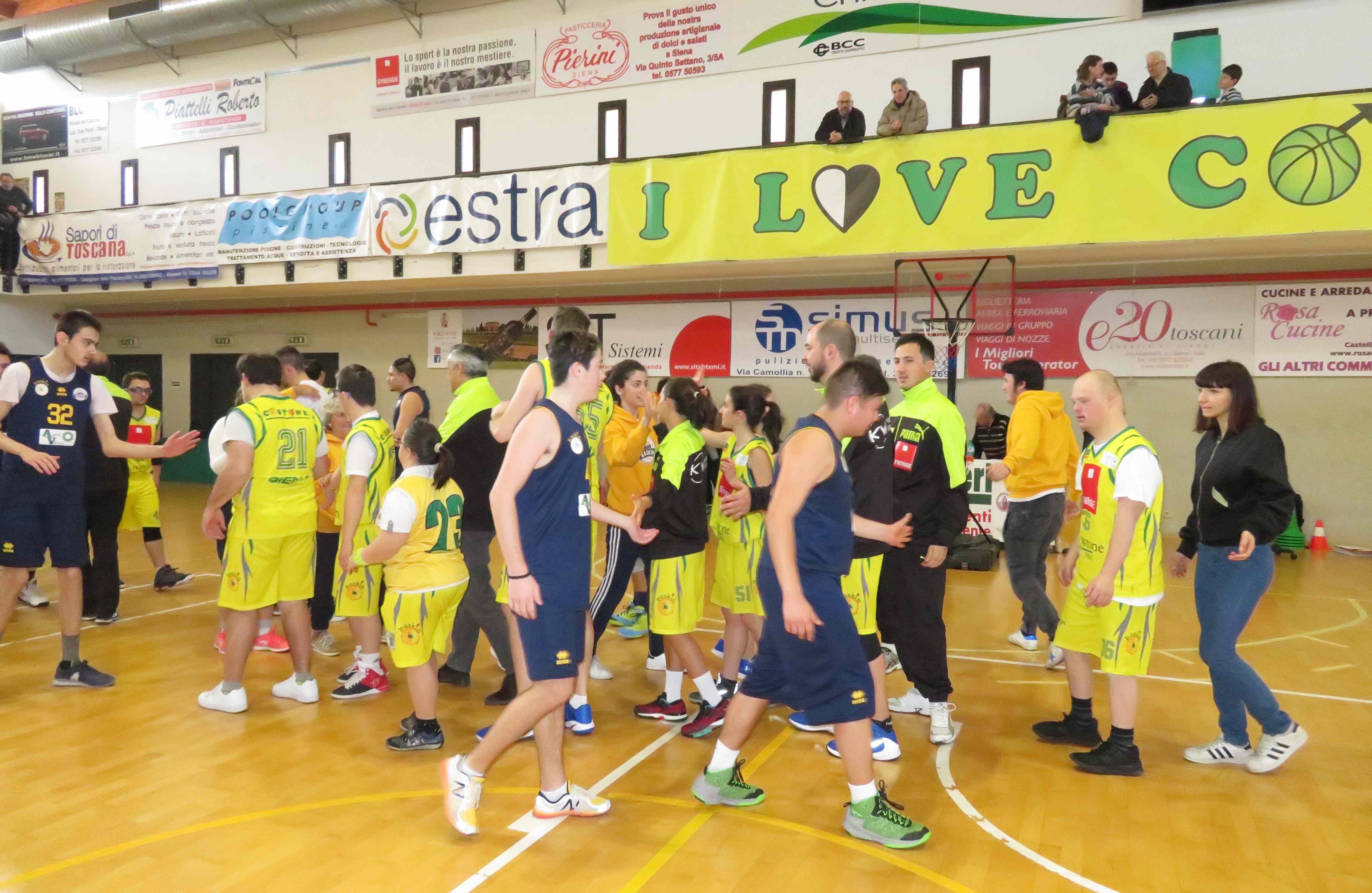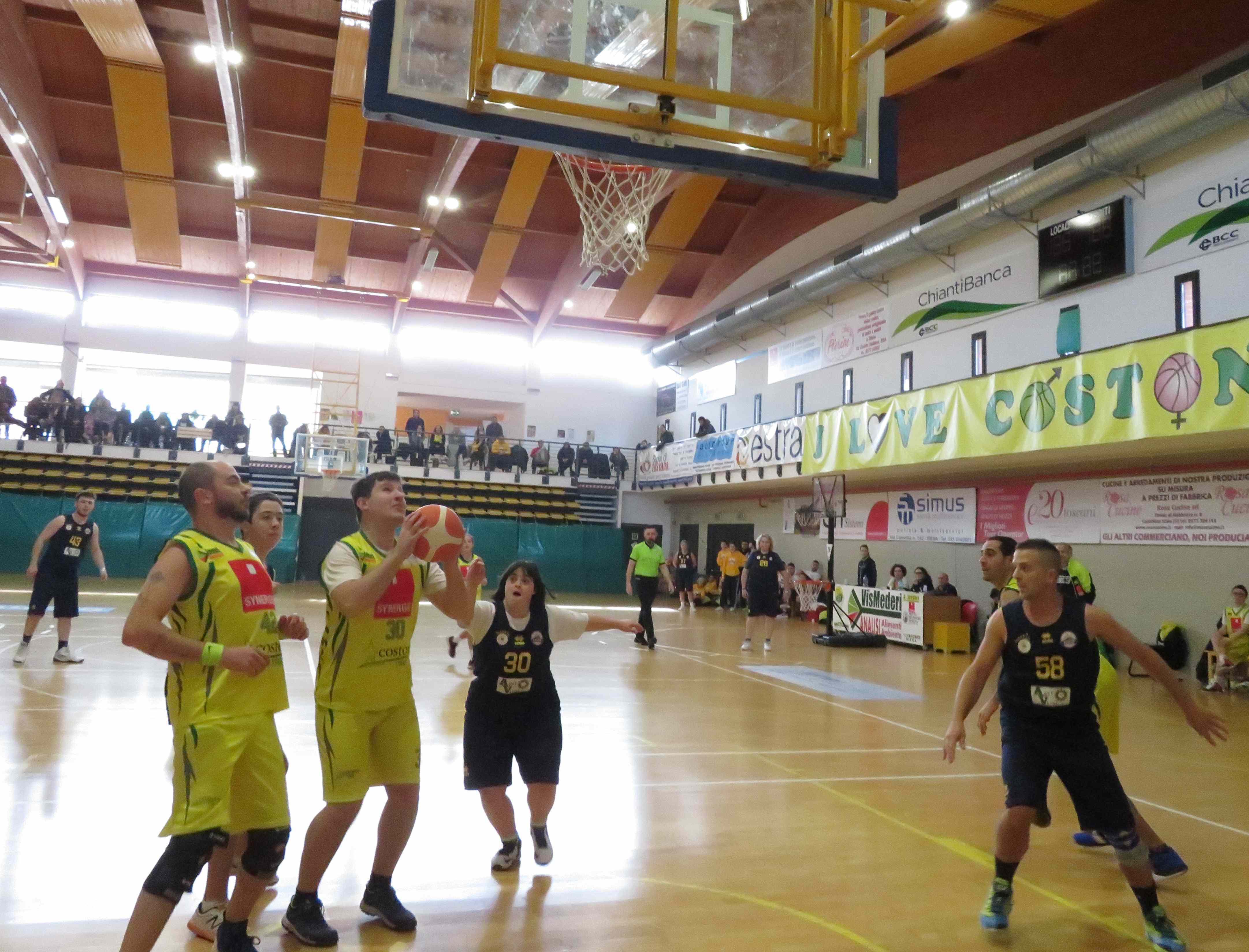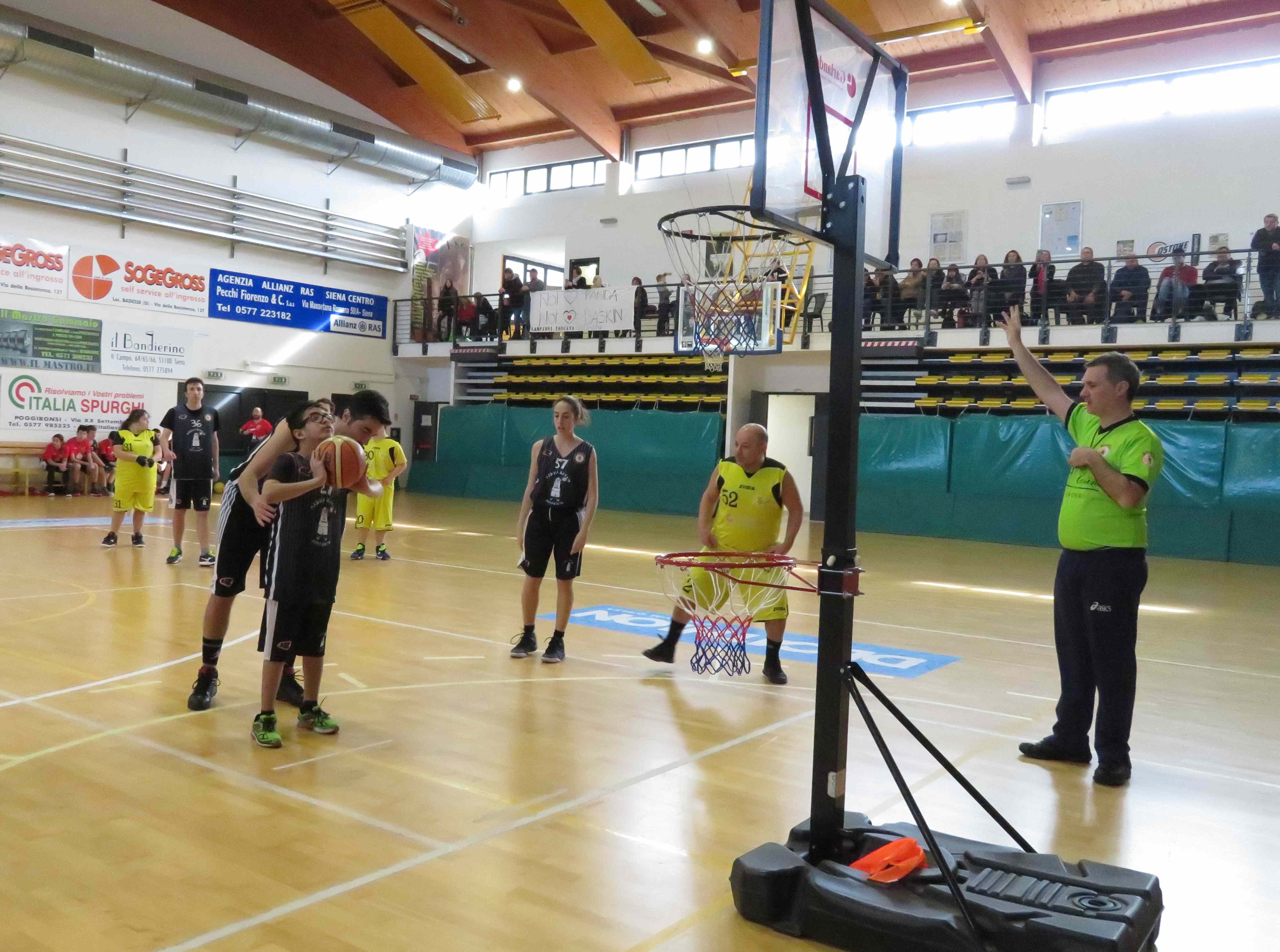 SIENA. In una cornice di pubblico davvero prestigiosa, si è disputato domenica scorsa al PalaOrlandi il Baskin Day, inserito quest’anno nel circuito di Siena Sport Week e valido per la 3^ giornata del Campionato Toscano Baskin. Ben 4 le gare giocate con Pistoia che l’ha fatta da padrona vincendo la prima contro i padroni di casa del Costone, per poi ripetersi nel pomeriggio con Porcari. I costoniani hanno trovato non poche difficoltà e dopo la parità dell’intervallo (29-29), i pistoiesi hanno preso il largo aggiudicandosi l’incontro con il punteggio di 45-66.
