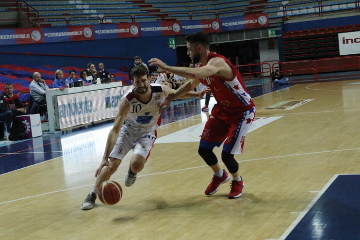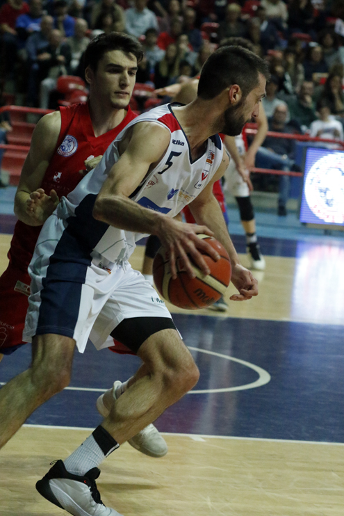 LA PARTITA: Partenza fulminante dei termali che piazzano subito un parziale di 10-0 con Meini e Galli sugli scudi, una partenza che penalizza molto la VirtusS, costretta a convivere con questo scarto per la totalità della partita. Un approccio assolutamente diverso dall’ottimo mostrato in Gara 1 da parte dei rossoblu, che ha influito negativamente sulla partita, dal momento che poi la Virtus ha giocato ad armi pari per tutti i restanti minuti. Terminato il primo quarto sul 22-11, nel secondo periodo i rossoblu provano più volte a riavvicinarsi ai padroni di casa, ma un po’ di imprecisione al tiro non permette ai ragazzi di coach Tozzi di tornare veramente a contatto, con Meini che, segnando una tripla sulla sirena, dà il +13 (40-27) a metà partita.
