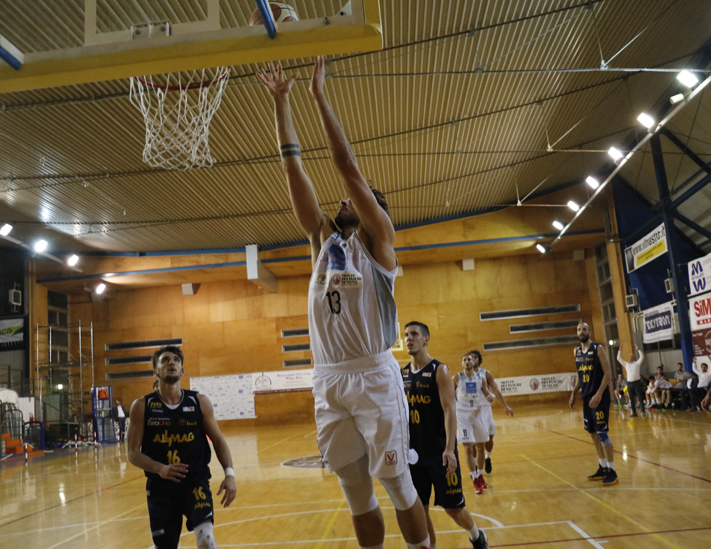 La partita è stata molto avvincente e combattuta ad armi pari, e qualunque squadra avesse portato a casa la partita l’avrebbe fatto meritando la vittoria, così come chiunque fosse uscito sconfitto l’avrebbe fatto a testa alta, consapevole di aver regalato al pubblico una partita giocata al massimo fino all’ultimo secondo. Sin dalle prime battute si è intravista subito che sarebbe stata la serata di Gianmarco Olleia, autentico trascinatore offensivo dei rossoblu durante tutto l’arco della gara (chiuderà con 26 punti con ottime percentuali al tiro), ma dall’altra parte il mix di esperienza e gioventù formato da Conti, ormai una sicurezza in questa categoria, e Di Bonaventura, prodotto delle giovanili PMS, uno dei migliori vivai d’Italia, fanno subito capire che non sarà una serata facile per la difesa virtussina. Il primo quarto si chiude in sostanziale equilibrio, 20-18 in favore della Virtus, la quale nel secondo quarto, dopo aver raggiunto addirittura il +7 sul 27-20, allenta un po’ tropo le maglie difensive, permettendo alla PMS di impattare il risultato all’ultimo secondo con Smorto, che chiude il secondo quarto in parità, 44-44.