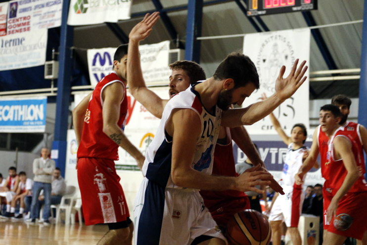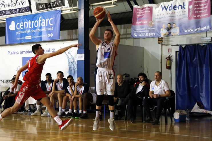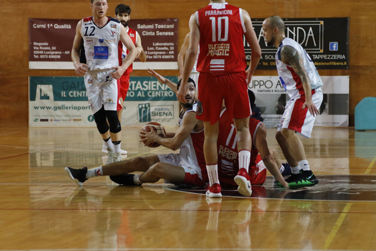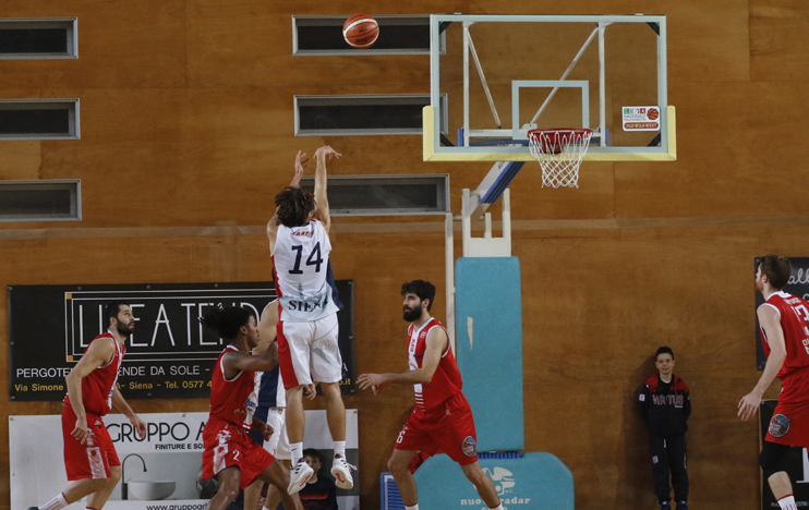 Alla ripresa i virtussini tornano in campo con un atteggiamento diverso ed in meno di due minuti piazzano il parziale che li riporta a -2 con la tripla di Maccaferri. Il risultato rimane in bilico per tutto il terzo quarto, con Siena che si affida ai soliti Olleia e Imbrò che, insieme a Simeoli, fanno rimanere a contatto i rossoblu, che non sono in grado però mai in grado di pareggiare o andare avanti, dando una botta psicologica a Oleggio, che resta sempre avanti anche se di soli due punti. Ultimo quarto che inizia con un parziale firmato Hidalgo che porta nuovamente gli ospiti in doppia cifra di vantaggio (59-69). La partita sembra finita, ma i rossoblu reagiscono bene e tornano a -5 con la palla in mano a poco meno di 2 minuti dalla fine: Imbrò si butta dentro ma il tiro viene sputato dal ferro e sul ribaltamento di fronte Gallazzi segna la tripla che ammazza la partita.