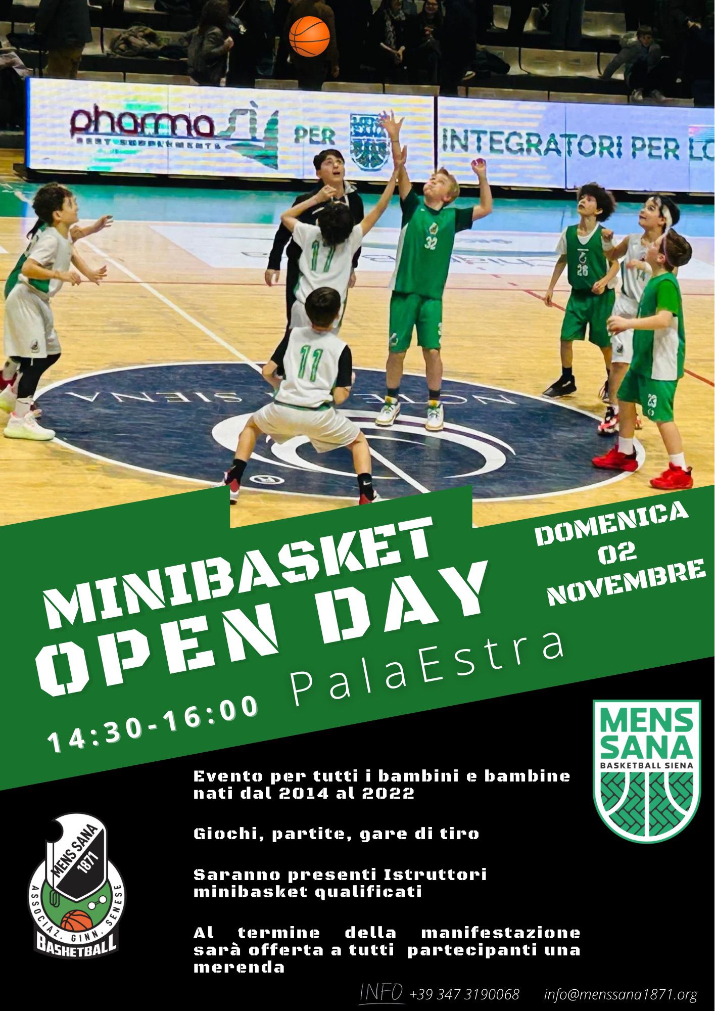 SIENA. Domenica 2 novembre, dalle 14.30 alle 16.00, la sezione Minibasket della Polisportiva Mens Sana 1871 organizza un Open Day aperto a tutti i bambini e le bambine nati dal 2014 al 2022. Un pomeriggio di gioco, socialità e movimento per avvicinarsi a uno degli sport più amati dai giovani, sotto la guida degli istruttori biancoverdi.