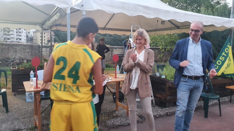SIENA. Si conclude questo pomeriggio, con la disputa del Triangolare tra Costone, Mens Sana e Virtus (PalaOrlandi ore 17,30), il Torneo che il Costone e la Contrada della Selva hanno voluto dedicare a don Vittorio Bonci e Giorgio Brenci. Nella serata di venerdì il prologo del Memorial che si è tenuto nella suggestiva cornice del campo all’aperto del Ricreatorio, l’unico ad avere resistito alle trasformazioni urbanistiche della Città. A far rivivere sensazioni di altri tempi, due squadre giovanili di Costone e Mens Sana che hanno dato vita a una gara amichevole giocata con grande entusiasmo dai protagonisti in campo. Per la cronaca, il Costone si è imposto per 60-47, ma il match è stato sostanzialmente equilibrato. Al termine, la consegna delle coppe, offerte dal Coni di Siena, ai capitani delle squadre per mano dei familiari di Giorgio: la moglie Oretta e i figli Fabrizia e Lorenzo che con grande commozione hanno ringraziato gli organizzatori del Torneo, così come i parenti del DonVi. A seguire, l’inaugurazione dell’epigrafe posta all’ingresso del Ricreatorio; per la circostanza è intervenuto anche l’Arcivescovo di Siena, il Cardinale Paolo Augusto Lojudice, accompagnato da don Emanuele Salvatori, l’attuale direttore del Costone, e da mons Rutilo e mons Acampa, i suoi predecessori. A ricordare i due grandi personaggi, Roberto Morrocchi e Giovanni Centini che assieme a Guido Sani, Lorenzo Carli, Marco Governi, Luciano Ghezzi, Luigi Bernini, Riccardo Rossi, Velio Cini, Daniele Frignani e Pasquale Cappelli, hanno rappresentato venerdì sera quel famoso gruppo che tanto impressionò a livello cestistico a metà degli anni ‘60.