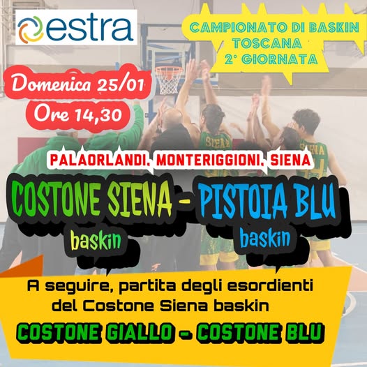 SIENA. Impegno casalingo per l’Estra Costone Baskin che domenica scenderà sul parquet amico del PalaOrlandi per affrontare la compagine di Pistoia. La gara avrà inizio alle ore 14,30, al termine della quale vi sarà un prologo, sempre legato a questa particolare disciplina sportiva che riesce a mettere in campo normodotati e diversamente abili, tutti assieme coinvolti in una magica atmosfera agonistica.