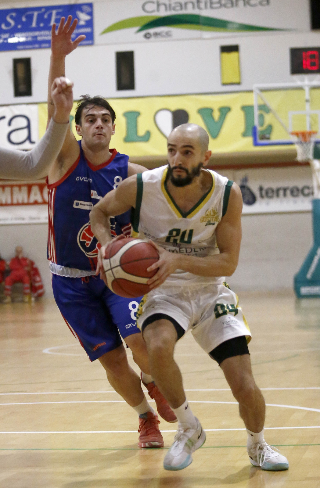 Il primo canestro della sfida è di Raiteri, che manda a segno una tripla. Nasello risponde, mentre il primo vantaggio gialloverde porta la firma di Zocca, ben supportato da Ballabio, per l’11-7. Siena arriva anche al +5, ancora trascinata da capitan Nasello, ma Azzano e Avonto rimettono tutto in equilibrio sul 15-15. Nel minuto e mezzo finale del quarto, però, le giocate di Zocca e Ballabio spingono il Costone sul 22-15, prima che il buzzer beater di Zeneli fissi addirittura il +10. I casalaschi aprono il secondo periodo con un parziale di 6-0. Nasello interrompe la striscia, ma Ravioli e Sirchia riportano gli ospiti sul +2. Il controsorpasso toscano arriva grazie a Ballabio e Matteo Paoli, entrambi a segno da tre, mentre Rosso firma sei punti consecutivi che valgono il 41-33 a 2’30” dall’intervallo lungo. Un’altra tripla, stavolta di De Marchi, seguita dal canestro di Nasello, permette a Siena di andare al riposo sul 46-34.