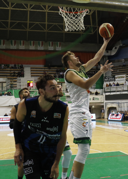 Morais e Carlson animano un inizio quarto molto veloce quanto confuso delle due formazioni 39-43 con 7’20”. Poi Prandin mette la bomba del -1, rintuzzata in parte da Fabi. Carlson da tre risponde a Sanguinetti, poi Lawrence mette la tripla 44-51 con timeout di Moretti e libero aggiuntivo per l’americano 44-51 Latina torna ad allontanarsi. Dal libero fallito, il canestro di Ranuzzi e il break toscano 6-0 con tripla di Poletti per il 50-51 con 3’49” che per Gramenzi è timeout. Pacher torna in lunetta per il sorpasso con 2’34” e l’allungo 54-51 entrando nel 29′. Carlson fa 1/2 in lunetta ma chiude il parziale dei padroni di casa 10-0, Baldassarre da tre rimette Latina avanti di uno. Per pochi secondi, con Pacher da sotto e replica di Lawrence con il libero del nuovo pareggio. 56-56 giusta parità per quello che si è visto in 30′.