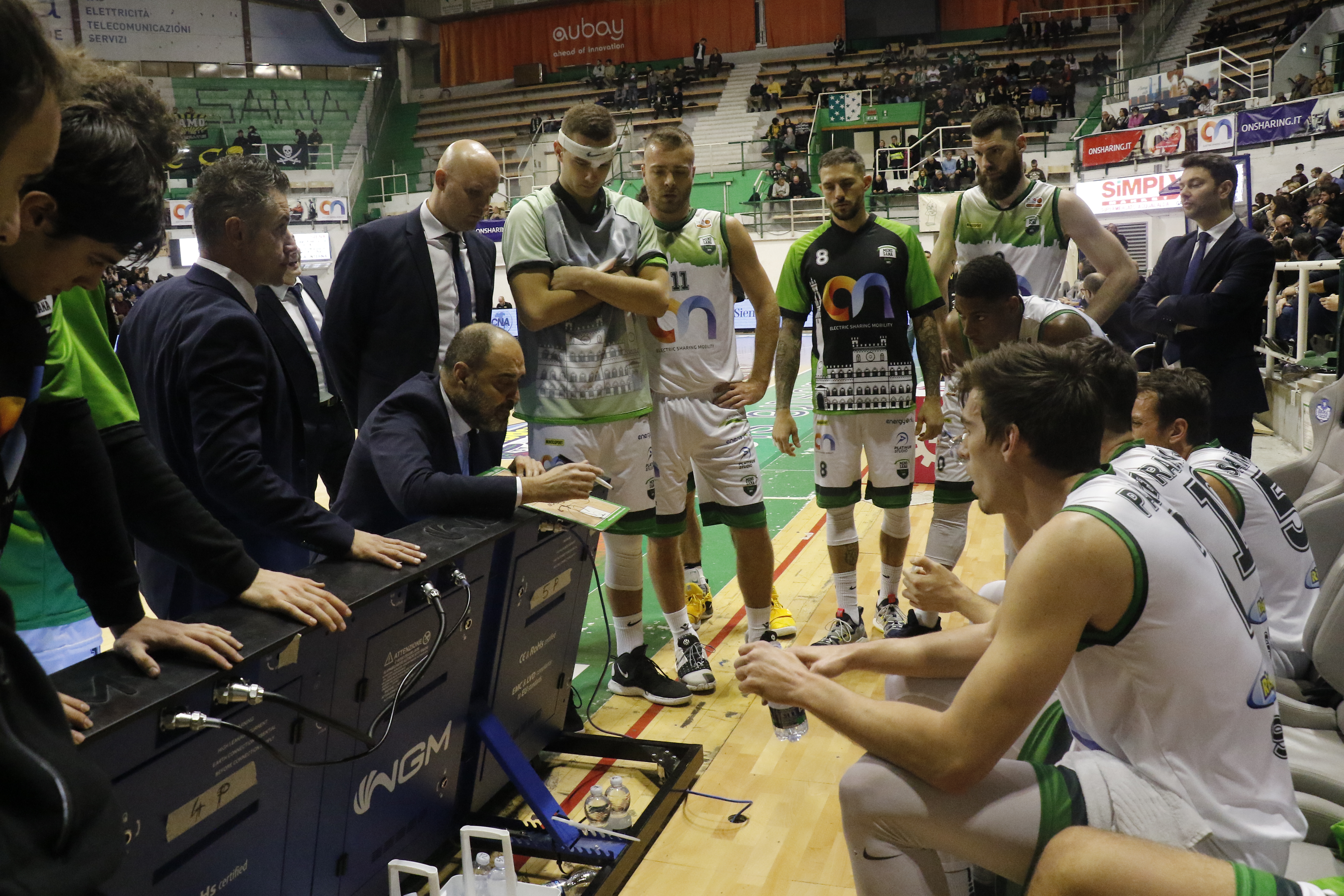 Gli ultimi dieci minuti si aprono con una bomba di Casella e un canestro dalla media di Zugno per il +17 ospite. Pacher prova a scuotere i suoi con una schiacciata e a ruota Sanguinetti la mette dalla media. 6-0 biancoverde con i tiri liberi di Morais (58-69 al 34’). Fattori spara però una tripla pesante e Zucca porta a casa un canestro e fallo che chiude di fatto il match (58-74 al 36’).