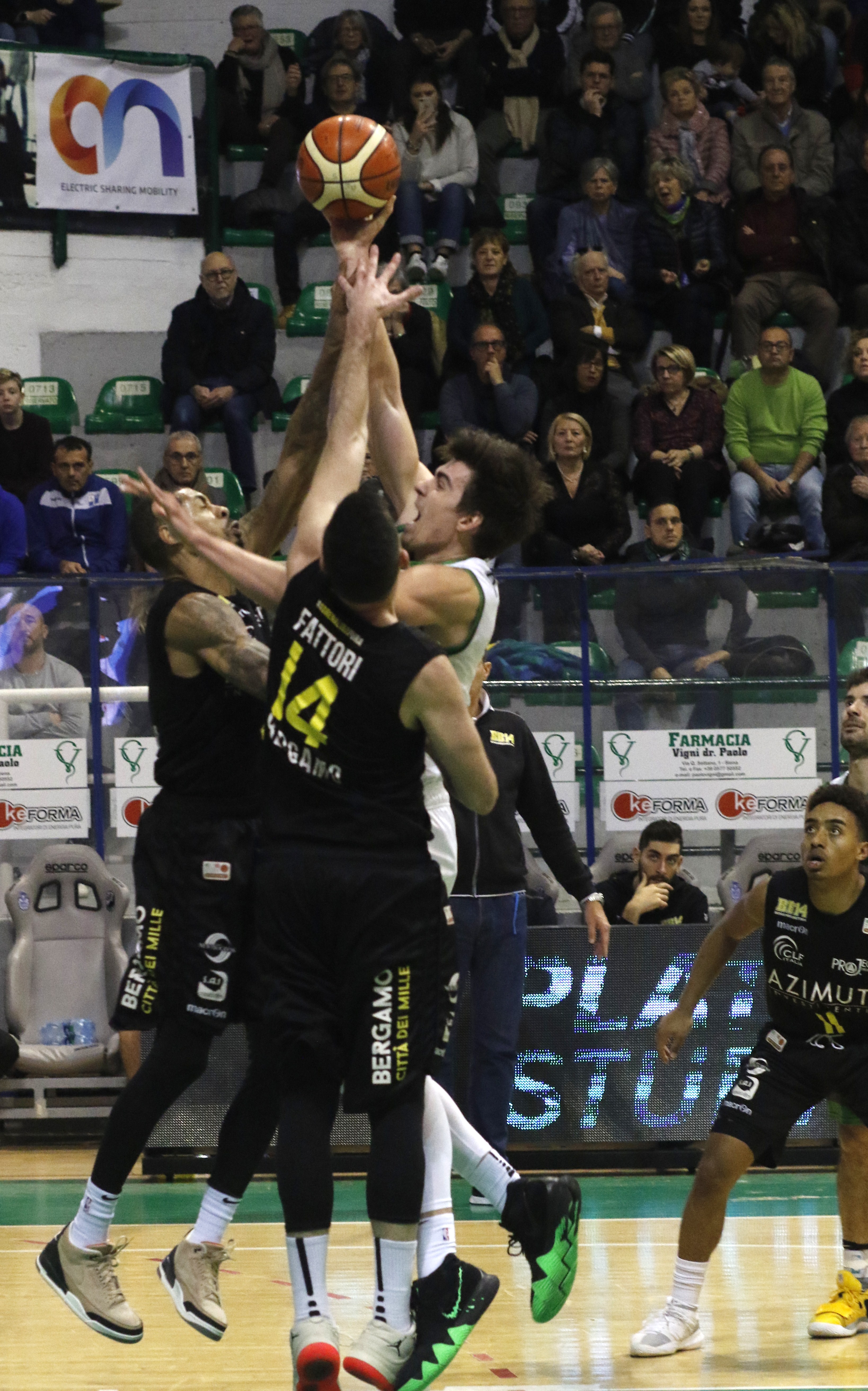 Al PalaEstra, nel match valido per la tredicesima giornata di andata del campionato di serie A2, primo quarto con i biancoverdi trascinati da Poletti e Morais (19-12). Nel secondo parziale Bergamo rimonta con Zucca e la coppia Taylor-Roderick e chiude in parità (39-39). È il preludio all’allungo dei lombardi nel terzo quarto, chiuso sul +12 grazie al tiro libero di Zucca, mentre negli ultimi 10′ Bergamo resiste e con Zucca, Fattori e Taylor trova il +20 e chiude i giochi.