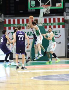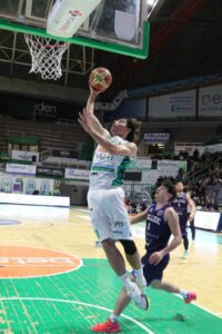 Il primo quarto è un vero e proprio Pannini show: il capitano apre la serata con un incredibile 5/5 da tre punti, facendo impazzire tutto il palazzetto e trascinando i biancoverdi. La sua prestazione è semplicemente strepitosa.