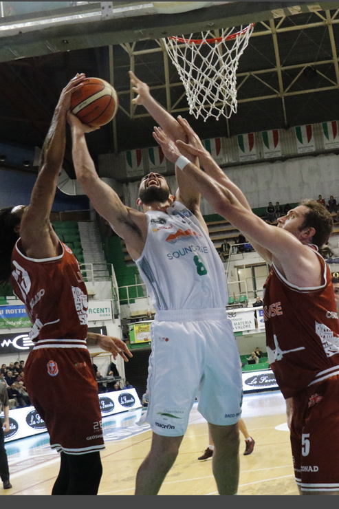 Non paghi di non aver concesso il fallo sul tiro conclusivo del terzo periodo per Siena, si riprende con un tecnico per Trapani, che ricava tre punti nell’azione. Saccaggi ci mette il cuore nell’area siciliana e porta a casa due punti d’oro. Il contropiede di Borsato, chiuso con la bomba spacca le gambe, Trapani cincischia, Saccaggi allunga 71-57 con 8’13”. La gara è sempre viva, la Lighthouse non rinuncia a lottare, Spizzichini sgomita bene (senza ironia, ndr) trova due liberi preziosi76-63 con 5’38”. Ma Sandri trova una tripla senza ritmo, Jefferson ci mette un piede nell’azione seguente e perde palla. La Lighthouse trova un piccolo strappo che la riporta a -11 con 3’24”, pressa sulla rimessa da fondo della Soundreef con qualche successo. Perry si guadagna due liberi, sbaglia il secondo, Ebanks attraversa il campo senza fallo fischiato poi sul rimbalzo d’attacco trova un antisportivo e il 2/2 in lunetta. Saccaggi non dà il colpo di grazia e, sul contrattacco siciliano, Jefferson lo spintona platealmente, ma niente fischio. Dalla caduta il play mensanino deve andare a farsi visitare in panchina… rimessa, corsa veloce di Ebanks plateale antisportivo di Perry. fischio, stavolta ma 0/2. Ancora una volta Siena perde l’occasione per chiudere il match, però il contropiede di Trapani è una pasticciata palla persa con 1’46” alla sirena. Sandri ci mette due liberi, 83-69. Spizzichini da tre non può decidere più nulla, 90-76.