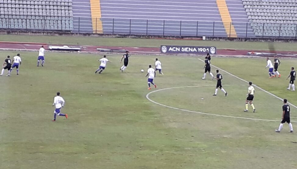 SIENA. (a. m.) Il Siena parte col piedi giusto, gioca in modo convincente e va subito in gol con Sartor al 3′. Su una punizione di Nunes e respinta della trasversa, Sartor è il più lesto ad avventarsi sul pallone ed insacca di testa. Nel primo tempo c’è poco altro da raccontare, se non che la squadra di casa appare già abbastanza in palla.