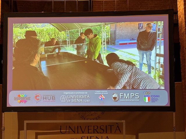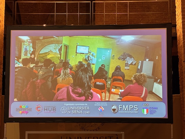 Ma protagonisti veri della presentazione, i ragazzi ovvero gli atleti presenti con le loro associazioni: ASD Baskin Costone, la rete del Terzo Settore Spazio Dirsi, a cui fanno riferimento Le Bollicine, UICI Siena, autismo Siena Piccolo Principe, ASEDO e CAI SIena. Con i loro referenti hanno illustrato le loro attività e la passione che ognuno di loro mette in tutto quello che fanno, mettendosi a disposizione degli studenti universitari per illustrare le varie discipline e attività.