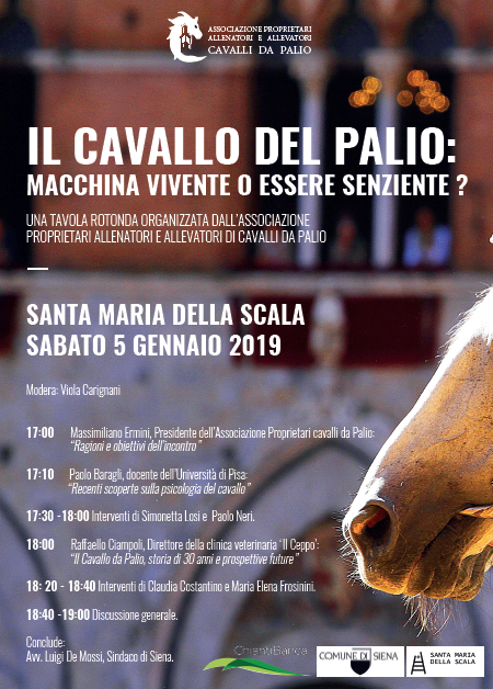 SIENA. L’Associazione Proprietari, Allenatori e Allevatori cavalli da Palio ha organizzato al Santa Maria della Scala una tavola rotonda in programma sabato 5 Gennaio.