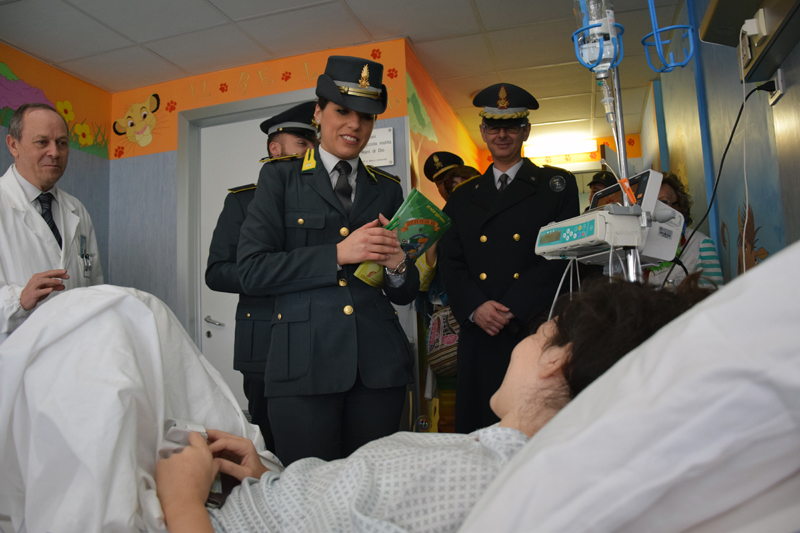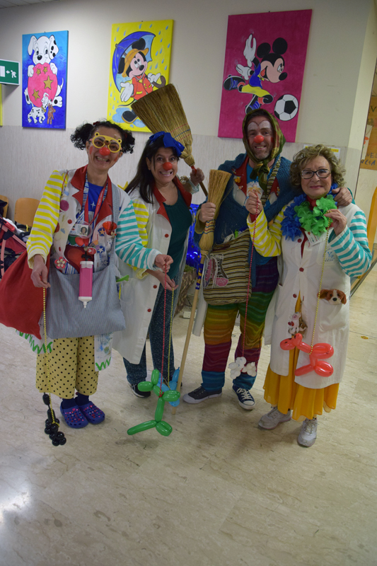 Insieme alla Guardia di Finanza, anche i clown in corsia dei volontari dell’associazione Nasienasi Vip onlus e della loro simpatica Befana.