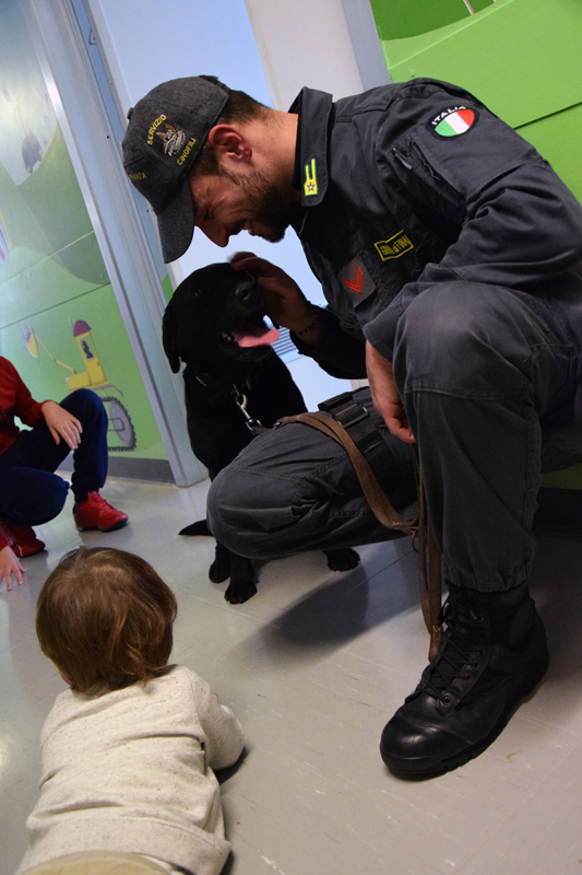 Gli uomini e le donne delle Fiamme Gialle del Comando Provinciale di Siena hanno portato doni e gadget per i bambini ricoverati, regalando così una mattinata di allegria e spensieratezza a tutti i presenti. Molto apprezzate anche la presenza e le dimostrazioni delle unità cinofile, con il pastore tedesco Banda e il labrador Deli (provenienti dai Comandi Provinciali di Livorno e Grosseto) che hanno dato dimostrazione delle grandi abilità dei cani impegnati con la GDF nelle operazioni speciali e nei controlli effettuati presso caselli autostradali, porti e aeroporti.